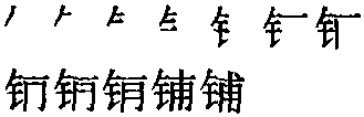 【提示】钅,5画,第二笔是横,不要写成侧点,末笔是竖提,不是一竖、一提两笔。甫,中间的两横,宋体与左右两边相接,楷体与左右两边相离。 *铺(鋪)pū12画 金部 (1) 把东西展开或摊平: ~床|~轨|~设|~被褥。 (2) 〈方〉量词。用于炕: 一~炕。 另见pù(317页)。