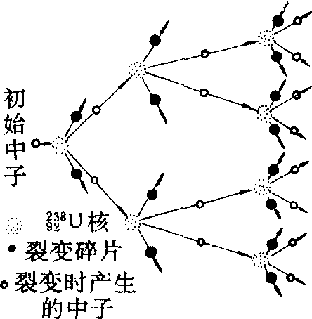 释义 | 链式反应 链式反应lianshi fanying自持的裂变反应的简称。亦称连锁反应。链式反应的过程基本上是以一个中子为媒介的、裂变核素部分质量转化为能量的过程。费米依据铀核裂变释放出约200兆电子伏的能量,以及裂变时铀核释放出中子的事实推想:235U裂变时释放出的中子又可裂变临近的其它235U,这样不断延续下去,235U的裂变一经开始就可以自行的以增长的形式不断进行下去,直到所有的铀核都发生反应为止。费米这一设想被匈牙利科学家西拉肯首先用实验加以证实。费米又于1942年领导建造了世界上第一个核反应堆。实现了有控制的核链式反应。图1为23592U发生链式反应的示意图。裂变过程中放出的中子有三种归宿: 图 1 图2 能够使链式反应缓慢地按受控方式进行的装置叫核反应堆。链式反应也可以很快地、不加控制地进行,原子弹就是利用这种链式反应制成的杀伤力很大的核武器。 ☚ 原子核的裂变 临界体积 ☛ 链式反应能自己持续进行的原子核反应。例如铀235的核吸收一个热中子发生裂变,同时放出2—3个中子;这些中子除去损耗后,如能至少剩下 一个以引起另一个铀235核裂变,就可使反应持续不断。 链式反应亦称“连锁反应”。重核受到中子等粒子轰击,在裂变的同时释放出数量增多的第二代中子,这第二代中子又引起重核新的裂变,使产生的中子不断倍增从而使重核裂变持续进行下去的过程。产生自持链式反应的条件有二:(1)参予重核裂变反应的最少裂交物质的数量不小于临界质量(体积); (2)每次分裂产生中子的再生率大于1。原子弹和核反应堆都是根据自持链式反应的原理设计的。 链式反应chain reaction 链式反应chain reaction |