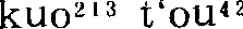 锅台。俗语:“锅头的饭吃得,锅(过)头的话说不得。”“拆锅头卖炕。” 《光棍难》(贤孝):“妻子归阴不在家,一年四季叫我锅头上爬。” 《团圆宝卷》:“泥匠听了团圆卷,盘的锅头水滚翻。” 《救劫宝卷》:“锅头灶台要干净,冲了灶爷罪难挡。” 《爱情花儿》:“奶子茶端给着锅头上,泪汪汪,圆干粮放给着柜上。”