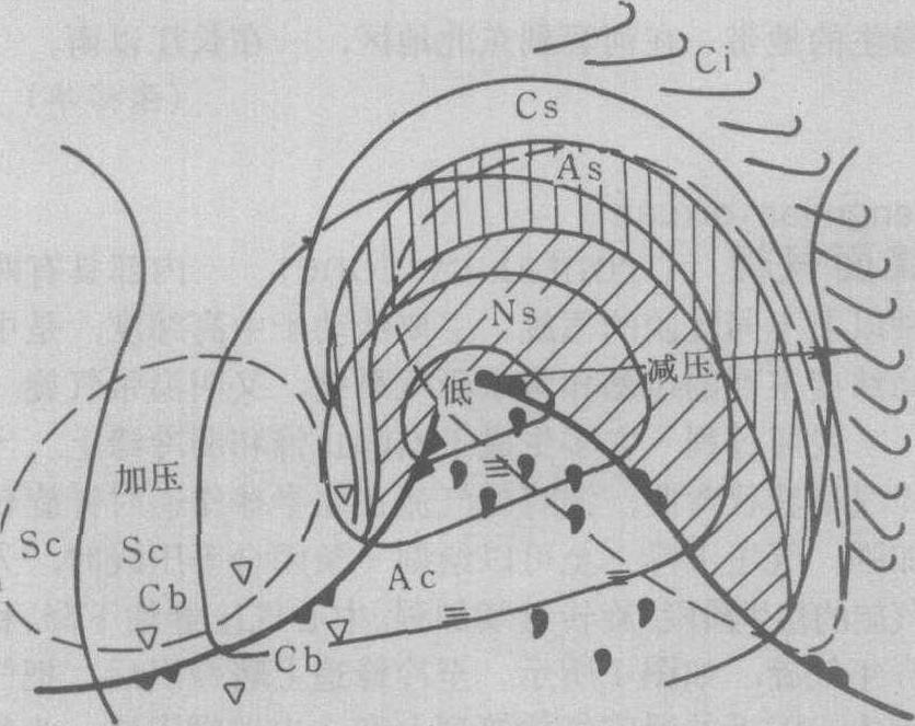 释义 | 锋面气旋fengmian qixuanfrontal cyclone内部具有两种以上不同气团的气旋。主要活动于中高纬度,是中高纬度主要的风暴和降水天气系统,又叫温带气旋。 图1 气旋结构 天气特点 云和降水的分布主要由锋的位置和性质所决定, 比一般锋面的云和降水发展得更旺盛, 并随着气旋的发展情况不同而不同, 随着流场、温度场、湿度场以及地形、地表等具体差异而不同。图2为锋面气旋发展阶段的典型天气模式, 暖锋前有宽广的云和降水带, 沿冷锋前后有较窄的对流天气带, 暖区空气若潮湿而稳定, 则常有雾和毛毛雨之类的天气, 如果不稳定, 则可出现雷暴、飑线、冰雹、龙卷等强对流天气。影响中国的锋面气旋, 以吉林、黑龙江地区出现的次数最多, 常称为东北低压, 其次是长江中下游附近, 常称江淮气旋。黄河流域、华南也可出现锋面气旋, 也是重要的降水天气系统。东北低压多自蒙古或贝加尔湖一带移来, 到中国东北地区多处于气旋发展的旺盛时期, 天气特点是多大风, 常伴有风沙或吹雪, 是降水的重要天气系统。江淮气旋在中国境内多属于气旋的初生阶段, 主要天气是降水, 常出现暴雨, 在其迅猛发展时也出现大风。它们的移动方向主要是向东和东偏北, 少数向东南。 图 2 气旋天气模式 锋面气旋frontal cyclone内部有锋面的气旋。主要活动于中高纬度,更多见于温带,又称“温带气旋”。它是中高纬度主要的风暴和降水天气系统。气旋内部气流辐合上升,锋面上气流上升更为强烈,往往产生云雨,甚至造成暴雨、雷雨、大风天气。发展成熟的锋面气旋的天气模式是:气旋前部是宽广的暖锋云系及相伴随的连续性降水天气;气旋后部是比较狭窄的冷锋云系和阵性降水天气;气旋中部是暖气团天气,如果暖气团中水汽充足而空气又稳定,可出现毛毛雨;如果不稳定,则可出现雷暴、冰雹等强对流天气;如果气团干燥,只能出现一些薄云而无降水。影响中国的锋面气旋,以吉林、黑龙江地区出现的次数最多,常称为“东北气旋”或“东北低压”。其次是长江中下游附近,常称“江淮气旋”。黄河流域、华南地区也可出现锋面气旋,也是重要的降水天气系统。锋面气旋的强度自地面向上逐渐减弱,一般到3~4 km的高度上,大多已变成低压槽。 锋面气旋模式 图中阴影部分为降水区 锋面气旋由锋面上的波动所产生的气旋。多发生于温带极锋之上,故亦称温带气旋。是形成中高纬地区大范围降水、大风等的主要天气系统之一。 |