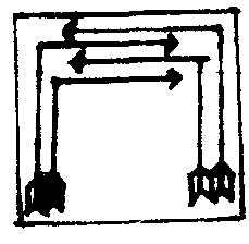 两纵队迎面相遇,采取队与队相互错肩而过的直线对走行进图形。其对走错肩形式有三种:左(右)错肩走、一隔一队错肩走、从里面 (外面) 错肩走。