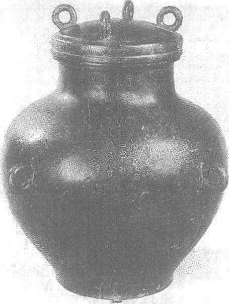 释义 | 错金“栾书”铜缶 错金“栾书”铜缶春秋。通高40.8厘米,口径16.5厘米。北京中国历史博物馆藏。此缶盖上有四个环钮,钮饰斜角云纹。腹鼓,最大径偏上部作四环耳,亦均饰云纹。通体素面,自颈至肩及上腹有错金铭文5行,共40字。盖内另有铭文二行八字,为器铭前两行,有人认为伪刻。此器是栾书祭祀祖先时盛酒的用器。栾书见《左传》,卒于公元前573年。又称栾武子或栾伯,是春秋时晋国的大夫,曾执政14年,为晋国霸业建立了功勋。其错金铭文,字形优美。错金技法,创于春秋时期,该缶是最早的几件实例之一。有铭错金器以戈、矛、剑等兵器居多,铭文往往仅数字,如此大件长篇铭文器者,十分少见。 ☚ “宋公差”铜戈 ">“徐王之子 ☛ |