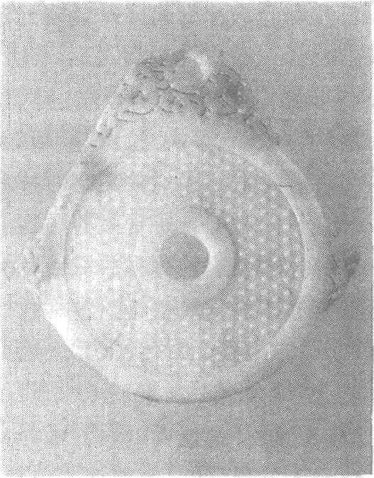 释义 | 镂雕龙螭纹玉璧 镂雕龙螭纹玉璧东汉。高30厘米,直径24.4厘米,厚1.1厘米。1969年河北省定县北陵头村中山穆王刘畅墓出土。河北省定县博物馆藏。青玉质,上有黄褐色浸痕。玉璧孔径较小,内、外边缘宽而厚,内部满饰隐起的谷纹(又称乳丁纹)。璧两端对称镂雕一龙一螭,其眼及身体的细部均以阴线刻划。璧上端随外边缘弧度构成类似三角形图案,以云纹为地透雕一龙一螭,两者口共衔圆环一枚。此玉璧制作极为精致,是汉玉璧中的代表作。玉璧见“玉璧”条目。 ☚ 刘胜金镂玉衣 东王公西王母玉座屏 ☛ |