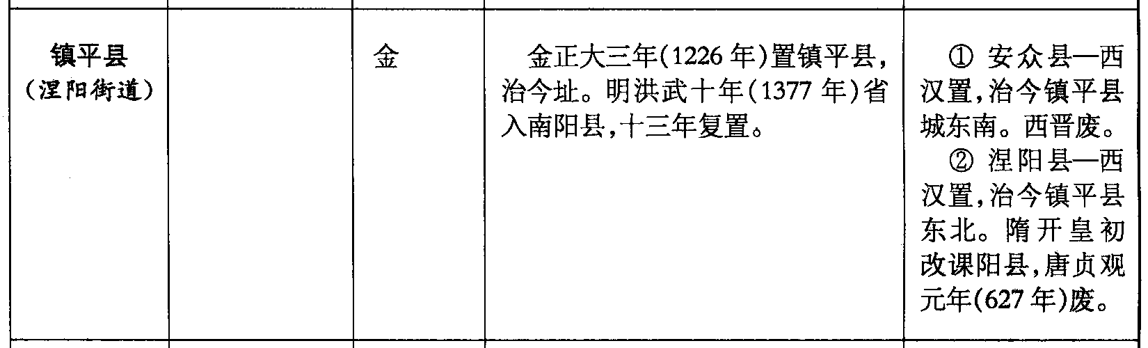 镇平县(涅阳街道)金金正大三年(1226年)置镇平县,治今址。明洪武十年(1377年)省入南阳县,十三年复置。❶ 安众县—西汉置,治今镇平县城东南。西晋废。❷ 涅阳县—西汉置,治今镇平县东北。隋开皇初改课阳县,唐贞观元年(627年)废。