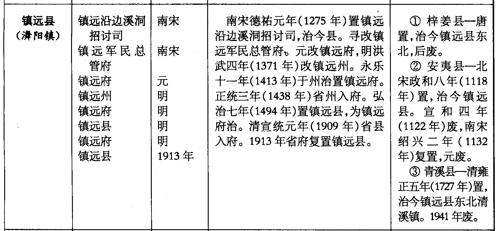 ❸青溪县—清雍正五年(1727年)置,治今镇远县东北清溪镇。1941年废。