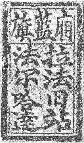 释义 | 镶蓝旗拉法旧站法尔哈达清代印。在吉林省蛟河市拉法镇旧房中发现。吉林市博物馆收藏。为木质,呈长方形,长6.7、宽3.8、厚3厘米,完好无损。印面为楷书汉字朱文,横读“厢蓝旗”三字在上,竖读“拉法旧站法尔哈达”八字在下,左右各四字(见印模)。印背正中有一阴刻“上”字,以标识倒正。拉法原是清代的一个驿站。“拉法旧站法尔哈达”译写出来,应该是 “拉法旧站署长”。 镶蓝旗拉法旧站法尔哈达印 |