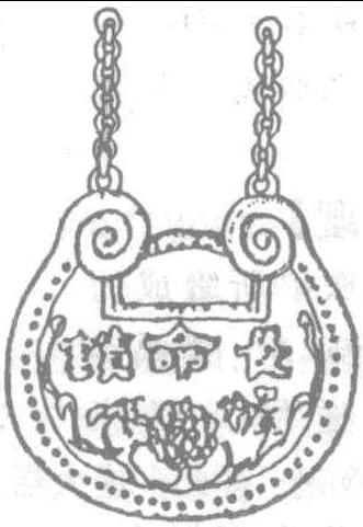 亦稱“金鎖”。古代一種打製成鎖形的飾物。南朝梁·宗懔《荆楚歲時記》稱“彩絲繫臂,謂爲長命縷。”長命鎖或由長命縷演變而來。嬰兒初生卽佩戴於頸項,有避邪與長壽之意。富貴之家多以金銀或玉石製作,鎖上常鏨以“吉祥”、“長命”等字樣,如《紅樓夢》中薛寳釵的鎖上,即有“不離不棄,芳齡永繼”之吉讖。民間的長命鎖,有向他人討錢打製者,意同“百家衣”。《紅樓夢》第八回:“項上掛着長命鎖、記名符。”
