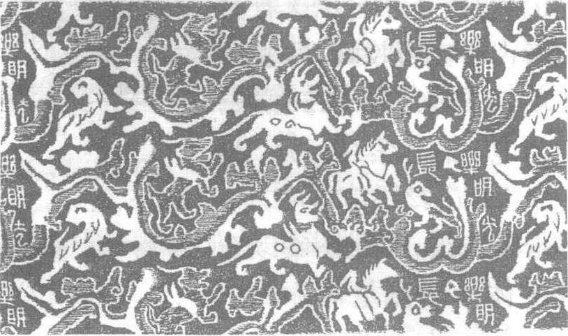 释义 | 长乐明光锦 长乐明光锦东汉制品,1980年在新疆罗布泊楼兰故城东7公里高台墓地二号墓中出土,现为新疆维吾尔自治区社会科学院考古研究所收藏。残长49厘米,宽10厘米。经线起花,以蓝色为地,上饰褐、绛、草绿三色显花,色彩浓重。图案中为骑马人物,左方为翼兽,右方为一狗,形象雄强。外缘有缭绕的变体云纹,右侧织出隶书体“长乐明光” 四字。汉代织锦较为发达,多采用祥禽瑞兽和吉祥文字装饰,与富于变幻的云纹构成具有强烈动感的画面。 长乐明光锦 ☚ 蜡染人物纹棉布 对鸡对羊灯树纹锦 ☛ |