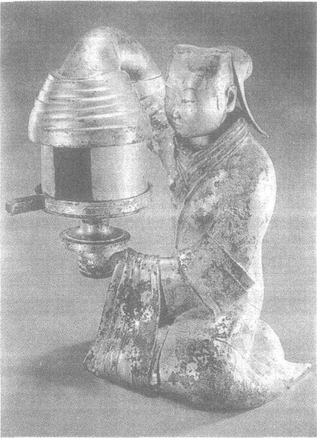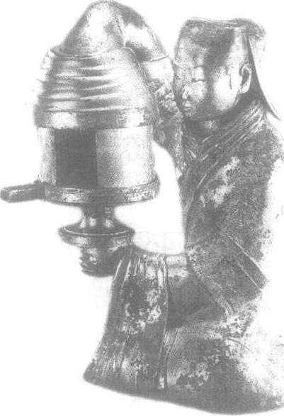 释义 | 古代名物 > 珍寳類 > 金銀部 > 銅器(附) > 長信宫燈 長信宫燈 chángxìngōngdēng 西漢青銅燈,上刻“長信尚浴”。“長信”指中山靖王祖母竇太后所居長信宫,故名。高四十八厘米。作宫女雙手持燈狀。宫女左手托燈座,右手袍袖罩於燈上,凝目前視。宫女頭部、右臂與燈罩、燈座等均可拆卸。右臂中空,作爲煙道。燈盤可轉動,燈罩可開闔,能任意調節燈光照射的方向與亮度。此燈通體鎏金,形象秀美,設計精妙,藝術價值很高。1968年,河北省滿城陵山出土。 长信宫灯 197 长信宫灯西汉。1968年于河北满城窦绾墓出土。窦氏为中山靖王刘胜之妻。灯高48厘米,通体鎏金,作宫女双手执灯形象。灯的各部包括宫女的头和右臂皆可拆卸,灯罩可以开合,以调整灯光照射方向。宫女右臂实为烟尘通道,以容烟尘于宫女形的器身内。铜铸宫女形象写实,眉目清秀,然情绪深沉,面庞丰满而带几分稚气,造型手法质朴简练,姿态自然,造型不仅供正面观看,而且从四面八方各个角度观赏,都显自然优美,流畅的衣纹随身体的运动柔软地转折起伏,足见汉代雕塑艺术技巧。 ☚ 牛虎形祭盘 青铜奔马 ☛ 长信宫灯 072 长信宫灯汉代铜制宫灯。1968年于河北满城西汉中山靖王刘胜妻窦绾墓出土。灯呈宫女跪坐双手持灯形,高48厘米,宫女高44.5厘米,通体鎏金,设计巧妙。灯座、灯盘、灯罩均可拆卸,灯罩可转动开合,以调节灯光照度与角度。宫女右臂与胸、腹中空,蜡烛燃烧所生的烟烬可通过宫女手臂纳入其体内,以保持室内空气的清洁。该灯的制作先按宫女头部、身躯、右臂、灯座、灯盘与灯罩分别铸造,然后组合成一整体,反映了高度的合金冶炼技术。灯上刻有铭文9处,64字。铭文中有“长信”2字,故名。 ☚ 阳陵虎符 汉归义羌长印 ☛ 长信宫灯 长信宫灯西汉著名铜灯具,1968年河北省满城县陵山中山靖王刘胜之妻窦绾墓出土。通高四十八厘米,长信宫灯作宫女双手持灯状,宫女着右袄宽袖长裳,跽坐,左手握灯底,右手袍袖罩于灯上,凝眸前视,烛火的烟则通过宫女的袖筒进入体内,使用时方便又清洁卫生。灯上有刻铭“长信尚浴”、“今内者卧”和“阳信家”等九处六十四字。长信,指窦太后所居长信宫,阳信,为阳信长公主之名,汉武帝之姊。中山靖王刘信为汉武帝之庶兄。此灯随葬于窦绾墓中,可能窦绾为窦太后的族人。此灯造型秀美,设计精巧,把灯的实用性和造型艺术的完整性巧妙地结合在一起,表现出古代匠人高超的智慧和艺术修养。该灯现藏于河北省博物馆。 汉长信宫灯 ☚ 西汉雁鱼灯 ">圆翁主釭 ☛ 长信宫灯 长信宫灯西汉宫廷照明灯具。1968年河北满城窦绾墓出土。高48厘米,重15. 85公斤。作宫女脆坐双手执灯状。器面通体鎏金,体内空,右臂及灯座、灯盘、灯瓦皆可拆卸。灯罩可以开合,以调整灯光照度宽窄。下有一柄,可以调整照射方向。右壁实际是烟尘通道,使烟容纳于体内,可保室内清洁。灯上共刻铭文64字,有六处刻 “阳信家”,还有 “长信尚浴”和“今内者卧” 以及记载容量、重量、编号、纪年等字样。“阳信家” 是汉文帝元年 (前179) 封的阳信侯刘揭的家,传子中意后六年 (前151),因获罪撤消了封国,此灯被没收,后归长信宫使用。长信宫是当时刘胜的祖母窦太后所居住,刘胜妻窦绾,是太后娘家人。太后生前将灯将赠送给窦绾,公元前104年,窦绾去世后,这件设计精巧的艺术珍品被随葬墓中。出土时,因年代久远,且长期埋藏地下,鎏金剥落处,铜体泛出了绿色绣斑。现收藏于中国社会科学院考古研究所。 ☚ 宫灯 花卉纹蜡台 ☛ 长信宫灯 长信宫灯灯,本来是生活中照明的用具,可心灵手巧的古代匠师却能把它们塑造成各种人物和动物形象,成为既实用又美观的装饰性雕塑。早在殷商时代,装饰灯具就已出现,战国时代已蔚然成风。见于出土的三门峡上村岭跪坐人灯、平山人俑灯、鸟兽攀枝灯以及江陵望山人骑骆驼灯等,都达到了很高的艺术水平。汉代继承前人传统,设计、造型更加讲究,出现了 一大批优秀之作。长信宫灯便是其中之一。 长信宫灯 长信宫灯是一件通体鎏金的铜灯,1968年河北满城西汉中山靖王刘胜妻窦绾墓出土。通高48厘米,人高44.5厘米。器身刻有“长信尚浴”等铭文共65字,故以 “长信宫灯” 命名。这件宫灯设计精巧,做宫女跪坐持灯形象。全器分头部、身躯、右臂、灯座、灯盘、灯罩六部分,可分可合。灯盘可以自由转动,灯罩能够开合调整灯光所照方向及照度大小。宫女右臂和身躯相通,可作为烟道以减少油烟的污染。宫女身着广袖长衫,造型丰满,面目端庄清秀,跪坐姿势自然、优美。其左手执灯,右手扶灯,头前倾,目光专注,露出一副谨慎小心的神情。作者对宫女低微卑下的地位有深切的了解和同情,对其情绪的把握和心理的刻画都是很成功的。 ☚ 高颐墓石辟邪 说唱俑 ☛ 长信宫灯 长信宫灯西汉制品,1968年在河北省满城县陵山窦绾墓中出土,现为河北省博物馆收藏。器形为一宫女跪坐执灯状,高48厘米,重15.85公斤。宫女身着宽袖、交领深衣,面部饱满,眉目清秀,左手托灯座,右手高举提灯罩,体态优美,神情端庄,不失为人物雕塑艺术的精品。其手中灯体为圆形,灯盘有短柄,上置两块瓦状罩板,顶部灯盖与宫女右手袍袖合为一体,衔接自然。整个造型立意新奇,制作精美。通体鎏金,更显富丽华贵。 长信宫灯 此灯的结构十分精巧合理。器体由九个部分分别铸