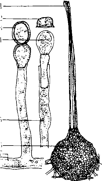 长喙壳属 1. 喙端须状 2. 子囊孢子 3. 厚壁孢子 4. 分生孢子 5. 孢子梗 6. 子囊壳 7. 菌丝 |