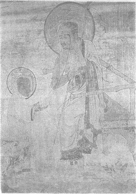 释义 | 长眉僧像壁画 长眉僧像壁画元。纵160厘米,横100厘米。甘肃省敦煌县莫高窟第95窟南壁西侧壁画。长眉僧是宾头户尊者的别称,尊者长命住世。图中他身着袒右肩袈裟,手握长杖,斜坐于竹椅上。其年岁老迈,双眉长度几乎及膝,额头上隐现皱纹,目光慈祥。身前有一弟子恭敬地捧住他的双眉。人物线描采用急转压缩的折芦描绘法,将一个博学多识的老者形象刻画得十分生动。其身体的肌肉表现逼真,竹椅的竹节亦富于质感,是元代壁画的上乘之作。 ☚ 火头金刚图壁画 供养菩萨壁画 ☛ |