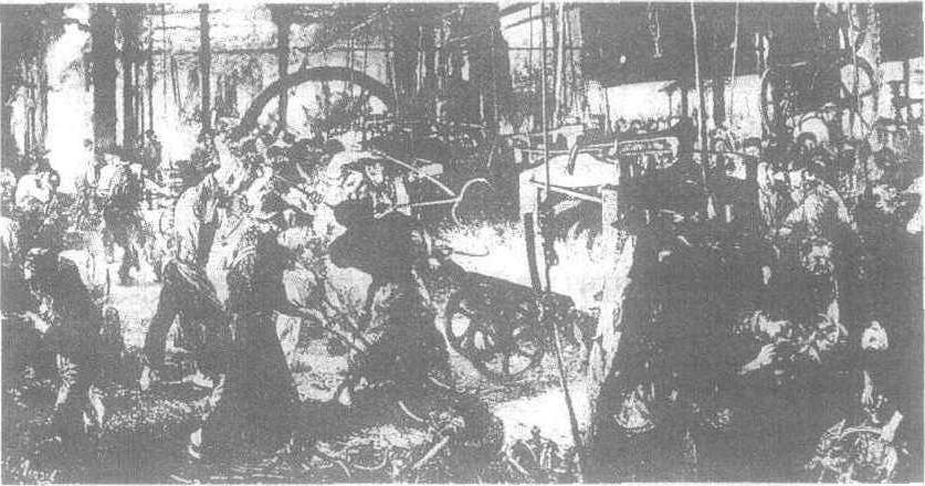 释义 | 门采尔《轧铁工厂》 门采尔《轧铁工厂》《轧铁工厂》是描绘产业工人题材的最初的优秀作品。由于保存状况不好,像是失去了当初完成时的辉煌色彩,但仍可看到画面上展现出一幕车间里繁忙生产的景象。整个厂房到处都是铁柱、链条、传送带、交错的齿轮……,屋顶也是由粗的细的铁柱搭建起来的,光线从天窗照射进来,黑压压的工人们在叮当作响地干活。炽热的熔炉里喷吐着熊熊火焰,它将中央人群的脸照得通红。这些新的生产力的代表者,他们有的高高举着火铗,有的叼着烟斗手拿炉叉,正挥汗如雨奋战在炼铁炉前。在右侧前景上,一部分工人利用工作间歇在吃午饭,他们身后是该轮班回去的人们。在左方中景上可以看到擦洗身子的工人,远处还有个头戴圆顶礼帽的工头模样的人,他悠闲地四处巡视,监督着工人们的劳动。总之,门采尔表现的不是劳动的 一个断面而是全景式的描写。他是接受 一银行家的订件而作的,当然不会是以揭露工人的悲惨状况为目的所画的吧。但工人们简单的伙食,老工人疲惫的表情,却又很好地叙说了他们的境遇。 轧铁工厂 门采尔 阿道夫 ·门采尔(1815—1905)出生在德国的布罗斯劳。父亲原是 一名教师,后来开了 一家不大的石印工厂。门采尔从小就在厂里帮助父亲工作,同时也培养了对绘画的浓厚兴趣。1830年,他们全家迁居到柏林。门采尔在柏林美术学院学习了一个短时期。父亲去世后,16岁的门采尔不得不独自经营石印工厂,挑起养家的重担。 门采尔早期曾为一些诗歌和小说画石版插图和刻木刻,成熟时期的作品则绝大多数是反映周围的现实生活,包括从宫廷礼仪场面到蒸气机车等丰富多彩的题材。他的观察力非常敏锐,平时很注重画速写,搜集素材,练就出 一手坚实的造形功夫。他的作品主要是靠记忆在画室里加工制作而成的。他笔下的贵族、小市民、劳动者,总是伴随着种种喜与忧的现实的背景,不加美化,也不有意贬低,而是如实地进行描绘。他是一位最早描绘革命和工人生活的具有社会主义思想倾向的画家,或许又可以说他是完全超出意识形态的德国印象派或外光派画家。 ☚ 库尔贝《画室》 列宾《伏尔加纤夫》 ☛ |