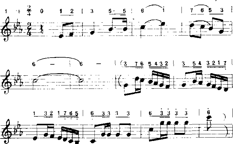 释义 | 演奏 演奏奏(~曲;重~;齐~;伴~;独~) 作(振奋~声) 翻(~出) 调 发 另见:音乐 乐器 艺人 表演 乐曲 乐声 ☚ 演奏 奏乐 ☛ 间奏 间奏jianzou或叫“过门”。是歌曲或乐曲在乐段、乐句或乐节之间,用乐器演奏的音乐片断。间奏起着加深、转换情绪及承前启后的连接作用。 ☚ 前奏 尾声 ☛ 间奏 间奏Jianzou在歌曲中间用器乐演奏的片断,可以是在两节歌词之间演奏(往往与前奏共用),也可以是乐节或乐句间演奏,也称过门。它不仅能使歌者休息、换气,而且有许多更积极的艺术镶饰的作用。 这段间奏在歌声暂停时表现了欢乐的情绪,还表现了继续向前划动双桨的动作感和哗哗啦啦的水声的意境感,使荡起双桨歌唱的乐思得到了形象的补充。 ❷乐句和乐节之间的间奏。可以增强感情的抒发、语气的表达和动作的刻划等。如:表演唱《祖国喜事多》,乐谱见“曲式”条。 ☚ 前奏 后奏 ☛ |