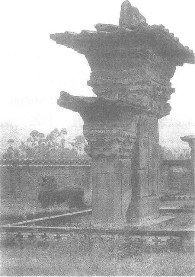 阙 075 阙古代宫殿、祠庙、陵墓前具有象征性和装饰性的建筑物,通常成对排列于左右(也有左右两阙上部连建一体者,类似门楼),双阙之间形成通道,故称阙(阙:即空缺意)。编成于春秋时的《诗经》中已有城阙的记述。早期砖木阙已不复存,现存汉代石阙,以四川雅安高颐墓阙、河南嵩山南麓登封三阙为珍贵实例。石阙雕有人物、图案,大者阙顶重檐,高低错落,檐下有斗拱。到明清时期,阙便演变成故宫的午门。 ☚ 厢 坛 ☛ 阙 阙古时的一种标识性建筑物,多以土石垒筑,亦有以雕石砌成者,高大直立。通常左、右各一,建于朝宫、祠庙及陵墓等前面。其大阙旁附建小阙者称子母阙。因其双阙间阙(即空缺)然为道,故称为阙。又以阙之台上可以远观,而称为观。朝宫门前之阙可悬治象(象即法式) 之法,亦称象魏。 ☚ 女墙 宫城 ☛ 阙 阙中国古代用来标志建筑群入口的建筑物。早期用来守望和显示威严,以后逐渐变成显示门第、崇尚礼仪的建筑物。周朝已有阙的记载,按当时定制,诸侯宫室可用一单阙,天子宫室才可用双阙,汉代的陵墓、宫殿均设阙,祠庙和贵族官僚宅第也建阙,以示官爵和功绩。阙分二类,一是独立的双阙,到唐宋时仅用于陵墓,以后不再应用; 另一种是门阙合 一的阙,在阙之间有三层或单层檐的门楼。阙的形式多样,有单檐或重檐对称的子母阙,有单檐或重檐不对称的子母阙,阙身常有表示主人身份名号的文字,以及表示吉祥富贵的动物、神兽的图案。现存具有代表性的是东汉高颐墓阙,为仿木结构,高5.99m,以左右相对的二个子母阙构成,上刻主人官职等文字和主人车骑入阙图,雕饰庄重精美。
