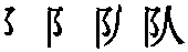 【提示】阝 ,2画,起笔是横撇弯钩; 旧字形3画,起笔是横撇。 *队(隊)duì4画 阜部 (1) 集体的编制单位: 舰~|连~|球~|梯~。 (2) 行列: ~列|排~|站~。 (3) 特指少年先锋队: ~礼|~旗|~日。 (4) 量词。用于成群成列的人或动物: 一~人马。 队隊duì甲骨文象倒“人”或倒“子”在山“阜(左耳刀)”旁,象从上往下坠状。队就是坠(zhuì)的本字。西周以后才从左耳刀(阜),从㒸(suì,也是隊、墜的本字),㒸亦声。声母舌尖音和舌尖前音相通。也是会意兼形声。 㒸字象豕shǐ(猪)身中(zhòng)矢形。猪被射倒,也有跌倒、坠倒义。所以西周至春秋常以㒸为队、坠字。西周中期个别也有从八从豕(豕亦声)作,用为队(坠)或遂的。个别也有坠(墜)字,《说文》未收,中古的《说文新附》有坠(墜)字。古书里也常用队(隊)作坠(墜)字。本义从甲骨文到小篆就是从高往下坠义,就用作坠字。中古音队和坠音义分化。声母音变如堆锥、堵诸例。现代群众把隊字简化为队,从人,因队伍人多,是规范字。见《总表》。队指集体的编制单位。现代指有组织的群众团体或排成的行列。如:乐队|排队|站队。组词如:队伍|队列|队形。坠字专用于坠落义。也类推简化。见《总表》。 队隊★繁◎常★常