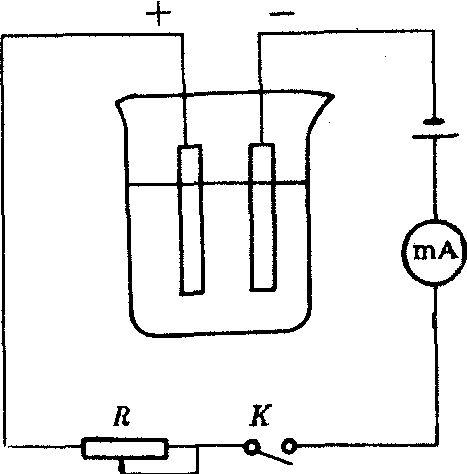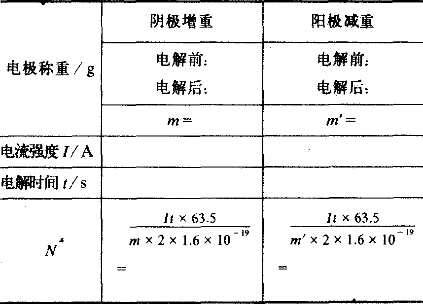 释义 | 阿佛加德罗常数的测定 阿佛加德罗常数的测定afujiadeluo changshu deceding本实验采用电解的方法进行测定。其原理: 用两块已知质量的铜片作阴、阳极,用强度为I(A) 的稳恒直流电电解硫酸铜溶液,经时间t(s)后: 实验步骤: 取3×5cm的薄铜片2块,分别用细砂纸擦去表面氧化物,水洗后用酒精棉球擦净,晾干后精确称重,分别作为阴、阳极;取一100mL烧杯加入约80mL15% (经硫酸酸化) 的硫酸铜溶液,将每块铜片的2/3浸没在硫酸铜溶液中,两块极板间距约1.5cm (见下图)。