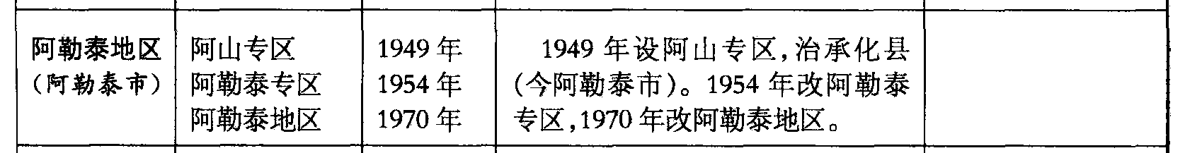 阿勒泰地区(阿勒泰市)阿山专区阿勒泰专区阿勒泰地区1949年1954年1970年1949年设阿山专区,治承化县(今阿勒泰市)。1954年改阿勒泰专区,1970年改阿勒泰地区。