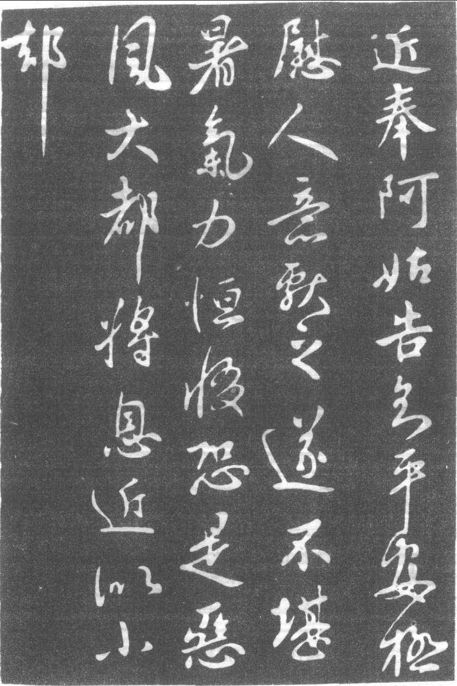 傳東晉王獻之書。為行書尺牘“近奉阿姑告則平安極慰人意獻之”云云五行。此乃行書佳帖,運筆暢達,充滿爽快之氣。其間有同形字,或疑為集字,而此本常事,不足怪者。