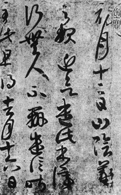【简介】: 东晋·王羲之书。唐摹本。纸本。草书。尺牍一则。凡八行,共六十二字。係《万岁通天帖》第二帖。辽宁省博物馆藏。刻入《眞赏斋帖》、《澄淸堂帖》等。刊于《辽宁博物馆藏历代法书选集》(一)、《中国美术全集·魏晋南北朝书法》、日本《书道全集》(二十六)。 【赏析】: 此帖想爲王羲之晚年所作,并晚于《十七帖》。此作介于章草和今草之间。观其结体,基本上还是字字独立的章草体势,论其笔法,已是今草气派。行气已由纵势爲主导,并有一些破锋、侧锋和上下牵丝的字。大部分字已不像《十七帖》呈扁形,而基本上是长形。显得自然、随意,丢掉了一些华彩的贵族气派,更接近质朴的北朝风规。这在王羲之诸帖中,具有较爲突出的风貌。  创作的随意性,会给作品增添新鲜的美感和出人意料的魅力。《初月帖》潦潦草草,在含蓄的主调中所体现的感情的流动,一种颇受压抑的暮年情怀获得某种任意地抒发,特别具有感人的力量。一种旷达中蕴含沉郁、忧伤的意态,在字裏行间流畅地凸现出来了。这大约便是“羲之书暮年愈妙”的佳处罢。 |