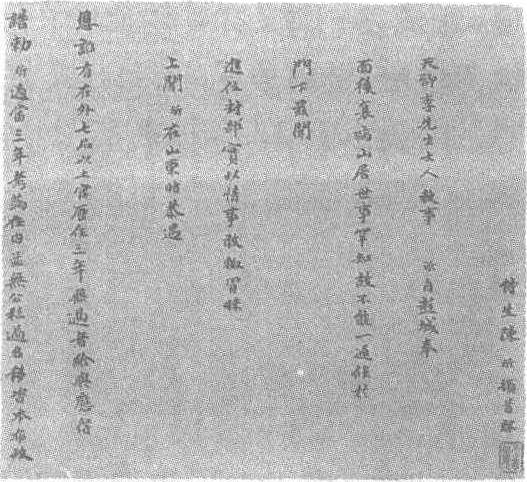 释文:侍生陈沂顿首启,天卿李先生大人执事,沂自彭城奉面后,衰病山居,世事罕知,故不能一通候于门下。兹闻进位封部,实以情事敢辄冒昧上闻。沂在山东时,恭遇恩诏,有在外七品以上官历任三年无过者,给与应得诰敕。沂适当三年考满,任内并无公私过名,移咨本布政司备将请给缘由咨呈吏部。后独遗不肖,今又遇恩典,实兴前次之思,乞怜于门下,得附名于请给之内,使地下衔恩,生存佩德,执事之恩,当并效衔结也。冒昧之罪,伏惟见原是荷。沂顿首上。十二月十六日。