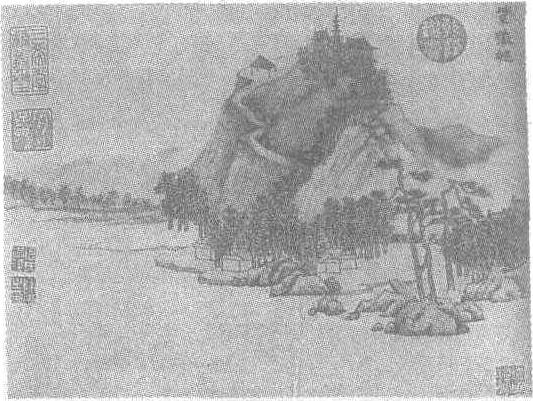 释义 | 陈淳紫薇村图页 陈淳紫薇村图页明。陈淳(见《陈淳竹石菊花图轴》条目)绘。纸本设色。纵23厘米,横30.6厘米。北京故宫博物院藏。此图描绘了江南的一座小山村。左下绘大片湖水,湖上一山突起,山下,古松高耸,林木平整。树下面掩映许多整齐房舍,山道弯弯直通山顶,山顶上树木葱郁,亭阁塔寺显露其间。远处,树木依稀,远山朦胧。设色淡逸,意境深远孤幽。用笔疏简,随意点染,笔意放纵。右上自题隶书“紫薇村”三字。钤〈陈道复氏〉、〈陈淳之印〉印二方。 ☚ 陈淳葵石图轴 陆治三峰春色图轴 ☛ |