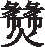 降读音x·iang(ˊ),为iang韵目,属ang—iang—uang韵部。下江切,平,江韵。 ❶降伏。如:降龙伏虎。 ❷投降。如:降敌。 ❸欢悦;悦服。《诗经》:“我心则降。” 上一条: 庠 下一条: 栙 降轰hǒnɡ❶诞生。例:猪生~猪娃子。 ❍ 捭~娃(戏谑语)。 ❷大。例:长~~、壮~~、大~~的。 ❸脱掉。例:脱~衣服、扒~衣服。 ❹贬低;降低。例:从官位上被拉~了下来。把官给抹~掉了。 《辞源》:“降(音:hónɡ),诞生;大。”《汉语大字典》:“降,脱掉;贬低,降低。” 降制服。俗语:“猫老了降不住鼠了。”“恶人自有恶人降。” 《猎原》(158):“双福女人那样的,脑子太好,怕降不住。” 《独弦操》(118):“轻了,降不住傢;重了,万一把傢做出个这三那四来,丢下虼虮蛤蟆的一大阵,谁管襄哩?” 降ɕiaŋ24使其驯服: 一物~一物,柳枝钻牛角。《说文》: “降,下也。” 户江反。《玉篇》: “降伏也。” 降〔jiang〕1.dax:~雨。dax nongs. 2. laot: ~价。laot nghat. 降低 〔jiang di〕jid laot. 降落 〔jiang luo〕zos: 鸟儿~在树枝上。dab nus zos nibgoul ndut. 降jiàng <绥德>烟大而压灭(火) : 柴湿着叻,~火叻。 降{}三3747①动指畜类生产幼畜。冀鲁官话。山东聊城〖 〗。一窝~了四个小狗‖母猪一胎~了十五个小猪儿。②动难为;威胁。西南官话。湖北武汉〖 〗。这点事~不倒我‖他只有拿哭来~人。③动欺负。中原官话。河南。《河南传统曲目汇编》三弦书第一集:「莫不是先生学规紧,再不是哪家同窗把你~?」④动(肥肉)使人腻。北京官话。北京〖 〗。这过油肉倒不~人。⑤动用囮子诱鸟入笼。官话。1982年9月10日《新民晚报》:「捉画眉有两种方法,一种是冬至后张着网把画眉赶进网去,一种是用笼子~。」   降;落jiànɡ luò【同】 都是动词;都表示从高处向低处运动。 【异】 “降”侧重于从上往下减低高度,往往是因外力而下落,有使下落的意思;一般只适用于逐渐减低高度的事物,适用范围较小;多用于书面语。[例]解放军似从天而~,把敌人围得水泄不通。“落”侧重于回复原位或因失去支持而自然下降,或不能控制地或并非有意识地向低处运动;适用于逐渐减低高度的事物,也可用于掉在后面、停留、衰败等方面的人或事物,适用范围较大;通用于口语和书面语。[例]秋末的黄昏来得总是很快,还没等山野上被日光蒸发起的水汽消散,太阳就~进了西山。 【反义】 降—升 涨/ 落—升 起 涨 出 开 降jiàng❶由高往低移动;落下(跟“升”相对, ❷同) △ ~落|下~。 ❷使落下;降低 △ ~旗|~价。 ❸姓。 【注意】右下第二画是竖折()。另见864页xiáng。