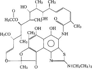 释义 | 利福克昔 C42H55N3O11S=809.97 CAS-113102-19-5 2′-(二乙氨基)-利福霉素P。 2′-(Diethylamino)-rifamycin P. (9S,12E,14S,15S,16S,17R,18R,19R,20S,21S,22E,24Z)-2-(二乙氨基)-5,6,16,18,20-五羟-14-甲氧-7,9,15,17,19,21,25-七甲基-9,4-(环氧十五碳[1,11,13]三烯亚氨基)糠基[2′,3′∶7,8]萘并[1,2-d]噻唑-10,26(9H)-二酮,16-醋酸盐。 (9S,12E,14S,15S,16S,17R,18R,19R,20S,21S,22E,24Z)-2-(Diethylamino)-5,6,16,18,20-pentahydroxy-14-methoxy-7,9,15,17,19,21,25-heptamethyl-9,4-(epoxypentadeca[1,11,13]trienimino)furo-[2′,3′∶7,8]naphtho[1,2-d]thiazole-10,26(9H)-dione,16-acetate. 抗生素类药。 Rifamexil,MDL 62,769. USAN. |