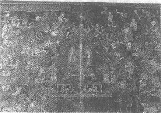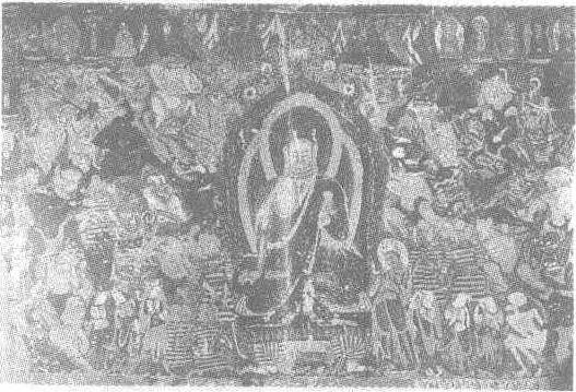 释义 | 降魔变图壁画 降魔变图壁画古格(公元10世纪至17世纪)。纵87厘米,横135厘米。西藏自治区札达县古格王国故城遗址白庙西壁壁画。降魔变讲的是释迦牟尼悟道时,魔王波旬率领群魔千方百计地前来扰乱,释迦终于用法力击退群魔。画面中,释迦牟尼居中,坐于菩提树下的莲座上,结跏趺坐。身着袒右肩的百衲袈裟,表情庄重沉着,右手作指地印以召地神作证。其周围满绘各种妖魔,有的持武器意欲进攻,有的变作兽首人身以恫吓,有的化作狮、豹、牛张开血盆大口相威胁,更有化作美女以妖艳相勾引。宝座旁地神涌出为释迦作证。整个场面宏大壮观,构图严谨,主次分明。故事情节表达准确,人物情绪的张弛把握良好,情绪烘托热烈,是这个时期藏族壁画中的优秀作品。 ☚ 礼佛图壁画 二十七星宿及十二宫图壁画 ☛ 降魔变图壁画 降魔变图壁画北魏。纵185厘米,横270厘米。甘肃省敦煌县莫高窟第254窟南壁东侧壁画。降魔变讲的是释加牟尼成佛前,天魔波旬率三个女儿及魔军,企图以女色和武力破坏释迦牟尼成佛的决心。释迦使以神通将其女儿变成老丑妇人,又降服了魔军。画面以释迦为中心,结跏趺坐于宝座之上,后有头光背光。面貌丰满,神态中透露出庄严。右手作指地印。其右侧站立着魔王,通身铠甲装束,相貌凶狠,正仰首怒视释迦,手作抽宝剑欲砍状。身后为其子,从旁劝阻。释迦的左侧为魔王的三个女儿,戴金冠,披长巾,穿半袖,外套长裙,一身龟兹装束。她们身材苗条,姿态各异,极尽媚态,向释迦牟尼争献殷勤。此外,魔众分列于释迦两侧,多形象怪异,非人非兽,张牙舞爪,杀气腾腾。画面下方跪两位战败的魔军。画面动静结合,美丑分明,色彩对比强烈,使这个表现正义与邪恶的故事产生了感人的艺术效果。北魏石窟中共有两处《降魔变》壁画,另一处在第263窟北壁。 ☚ 婆薮仙壁画 萨埵本生图壁画 ☛ |