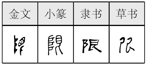 xiàn形声,从阜,艮(gèn)声,本义为险阻,引申为限制、界限、门槛等。 【辨析】 限/线 见449页“线”。 |