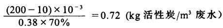 [例]在图6-3-7列出了化学磨木浆废水的处理流程和水质。在图6-3-8中,曲线a是活性炭的等温吸附线。从图中可知,相对于COD=200mg/L的平衡吸附量为0.38kgCOD/kg活性炭,若有效吸附量是平衡吸附量的70%,计算: ❶ 当COD<10mg/L时所需要的活性炭量; ❷ 假设活性炭再生损失为8%,求活性炭的补充量; ❸ 如果活性炭的单价为A元/kg,求补充活性炭的运行费。 解: ❶ 需要的活性炭量为:  ❷ 活性炭补充量为: 0.72×0.08=0.058(kg活性炭/m3废水) ❸ 补充活性炭的运行费用: A×0.058=0.058A(元/m3废水) |