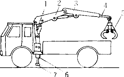 释义 | 随车起重机lorry crane在运材汽车上,配备铰接式的液压起重臂,能自行装卸原木的流动式起重机。液压起重臂位于汽车驾驶室与货厢之间。由主臂、副臂、伸缩臂、转柱、底梁、抓具和液压系统的部件等组成。各机构全部采用液压传动,当汽车发动机带动油泵转动后,高压油输入各工作油缸或油马达,于是液压起重机可产生主臂与副臂曲折、转柱旋转、支腿收放、伸缩臂伸缩、抓具回转和抓爪开闭等动作。液压起重臂装车后将动臂折叠在驾驶室顶部而不占货厢位置。它工作平稳,操纵灵活,生产率高。适用汽车运材及贮木场、堆栈装卸作业。 随车起重机 1.转柱 2. 主臂 3. 副臂 4.伸缩臂 5.抓具 6. 底梁 7.支腿 |