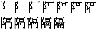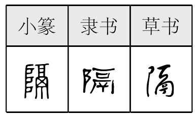 【提示】阝 ,2画,起笔是横撇弯钩; 旧字形3画,起笔是横撇。鬲,下面冂内是一侧点、一撇; 旧字形作 , 或作 。 *隔gé12画 阜部 (1) 拦断;分开: ~断|~音|阻~|把屋子~成两间|两村之间~着一条河。 (2) 时间或空间不连通,有距离: 相~甚远|恍如~世|~了三天才去。 隔 ☚ 附 障 ☛ 隔gé本作“鬲”(lì又gé)。甲骨文以来的象形字。和鼎相像,一般三足,足中空。鼎是实足。原始社会新石器时代已有用陶制的,煮食物用。作器具名称读lì。用作形声字的声旁时多读gé,如义符是左耳刀(阜)、月肉旁等字就读gé。声母可能原是复辅音gl-。鬲转为动词作遮断,隔开义时就读gé。秦代泰山刻石小篆就增加左耳刀(阝,阜),作这个音义。现代汉语如:隔着一条河。成语如:隔靴搔痒|隔岸观火|隔山打牛。组词如:隔阂|隔离|隔膜。 隔★常◎常