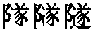 【提示】阝,2画,起笔是横撇弯钩; 旧字形3画,起笔是横撇。 和辶的末笔原本均是捺,为避重捺, 的末笔捺改点。 辶, 3画,上面一点; 旧字形4画,上面两点。辶的第二笔,宋体是横折,楷体是横折折撇。 *隧suì14画 阜部 〈书〉在地下或山体中挖成的通道: ~道|~洞。 隧 ☚ 陌 𨺅部 ☛ 隧suì古书作遂。遂有因循、顺应、通达义,又有道路义、隧道义。隧是中古造字。把遂加左耳刀(阜),形声兼会意,和遂分化。本墓道义,引申为地道义。现多用于隧道,指凿通山石或在地下挖沟所成的通路。 隧★常◎常suì形声,从阜,遂声,隧道,在地下或山中开凿的通道。 【辨析】 隧/遂/述/術(术) 见565页“术”。 |