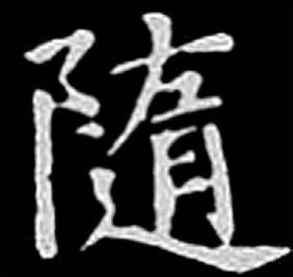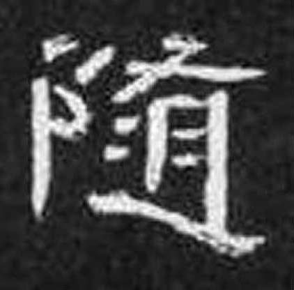 古代名物 > 醫藥類(下) > 金石部 > 石 > 白石脂 > 隨 隨 suí 隨suiEB53 “随”的繁体。 隨suíS233 “随”的繁体。 〖隨〗 粵 ceoi4〔徐〕普 suí ❶ 跟隨,跟從,隨從。許慎《說文解字》:「〜,从也。」(从:通「從」,跟隨。)王安石《遊褒禪山記》:「而予亦悔其〜之。」 ❷ 隨着。王羲之《蘭亭集序》:「情〜事遷。」 ❸ 聽任。王維《山居秋暝》:「〜意春芳歇,王孫自可留。」 ❹隨隨便便。韓愈《進學解》:「業精於勤荒於戲,行成於思毀於〜。」 ❺ 副詞,隨即。司馬遷《史記.留侯世家》:「良殊大驚,〜目之。」