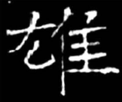 雄❶生物中能产生精细胞的:~性︱~花︱~蕊︱~鸡︱雌~。 ❷有气魄的:~伟︱~厚︱~图︱~心︱~姿︱~威︱~文︱~主︱~关︱~赳(jiu)赳︱~心壮志︱~才大略。 ❸强有力的:~辩︱~兵︱~师︱~大︱~浑︱~壮︱~健︱~劲(jing)。 ❹强有力的人或国家:英~︱群~︱奸~︱枭(xiao)~︱称~︱英~气短︱无名英~︱巾帼(guo)英~︱顾盼自~︱英~所见略同︱英~无用武之地。 ○决一雌~(雌雄:比喻高低、胜负)。 雄xióng❶ 动植物性别的一种,跟“雌”相对:雄鸡︱雄蕊。 ❷ 强有力的人、集团或国家:英雄︱奸雄︱战国七雄。 ❸ 强有力的,有气魄的:雄心︱雄才︱雄师。 ❹ 姓。 雄(3次) ❶雄性。与“雌”相对。~鸠之鸣逝兮《离》 ❷大。~虺九首《天》《魂》 雄xiong雄伯(bo) 雄辩 雄兵 雄大 雄断 雄飞 雄风 雄蜂雄夫 雄关 雄厚 雄花 雄黄 雄浑 雄鸡 雄戟 雄健 雄杰1雄精 雄劲(jing) 雄踞 雄蕊 雄师 雄狮 雄图 雄威 雄伟 雄心 雄性 雄雄 雄鹰 雄张 雄州 雄主2 雄壮 雄姿 称雄 雌雄 奸雄 群雄 枭(xiao)雄3 英雄 雄黄酒 雄赳赳 雄才大略雄文四卷 雄心壮志 民族英雄 无名英雄 一次雌雄 一世之雄 雄赳赳,气昂昂 英雄所见略同 雄xióng两性中属公的:走兽飞禽,~为阳,雌为阴;牝为阴,牡为阳。(三一·726) 古代名物 > 禽鳥類 > 總稱部 > 成鳥 > 雄 雄 xióng 亦稱“鳥父”。公鳥,與雌相對。《爾雅·釋鳥》:“鳥之雌雄不可别者,以翼右掩左,雄;左掩右,雌。”《說文·隹部》:“雄,鳥父也。”《詩·小雅·正月》:“具曰予聖,誰知烏之雌雄。”《文選·潘岳<;射雉賦>;》:“鳴雄振羽,依于其冢。”李善注引徐爰曰:“言野之雄雉,振其羽翼,鳴鴝高墳之上。”唐·李白《蜀道難》詩:“但聞悲鳥號古木,雄飛雌從繞林間。” 雌;雄○雌cí(形)生物中能产生卵细胞的(母的、阴性的):~鹿|~性|~鸡|~蕊|群~粥粥|不甘~伏|~雄同体|~雄未决。 ●雄xióng(形)生物中能产生精细胞的(公的,阳性的):~狮|~蜂|~花|~性|雌~异株|一决雌~|~鸡断尾。 雌←→雄cí ← → xióng雌:生物中能产生卵细胞的。 雄:生物中能产生精细胞的。 【例】 白天鹅长着纯白色的羽,不掺杂 一点杂色,长长的头颈,肥大丰满的身体,象一位披着白衣的天女。……它们总是雌雄形影不离,白天展翅同飞,夜晚交颈而眠。(张清愉: 《天然动物园》) 雄xióng〖动词〗 称雄(3)。《鲁仲连义不帝秦》:方今唯秦雄天下。——现在只有秦国称雄天下。《秦楚之际月表》:故愤发其所为天下雄。——所以高祖愤发起来就能在天下称雄。《张益州画像记》:以度量雄天下。——[张公]以才识和气度称雄于天下。
