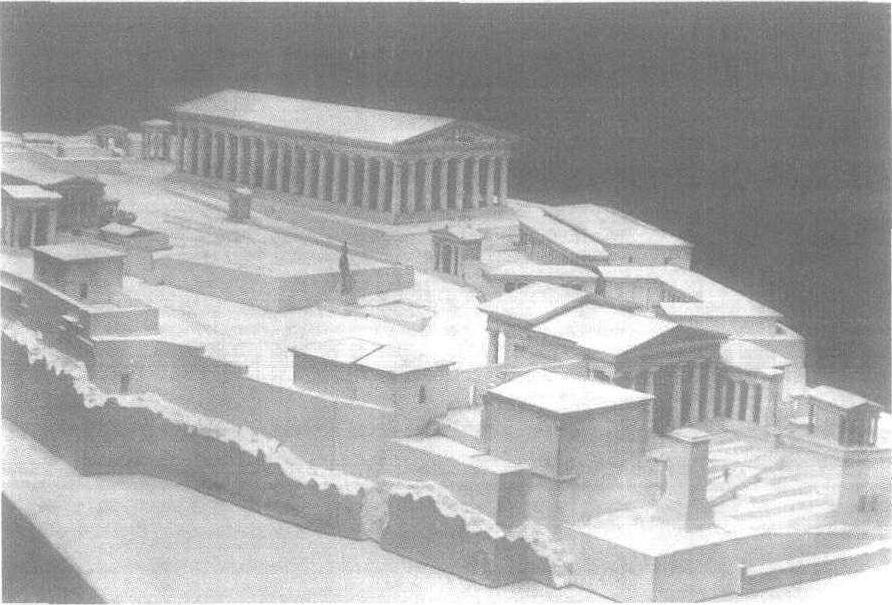 释义 | 雅典卫城古迹名。 在今希腊雅典市中心高150米的陡峭山丘上。建于公元前14~前12世纪,为历代战争时的城堡要塞。由帕提侬神庙、埃雷赫修庙及其它一些古建筑组成。帕提侬神庙建于公元前447~前431年,高达12米的雅典娜女神雕像在此殿内。帕提侬神庙以北的埃雷赫修庙,建于公元前421年,传说为雅典娜女神和波塞冬海神争做雅典保护神而进行斗智的地方。此外还有精巧的无翼胜利女神庙和雄伟的山门等建筑。 雅典卫城希腊建筑群。位于今雅典城西南,在希波战争中全部被毁。公元前448~前406年间重建。卫城是进行祭神活动的场所。卫城建在雅典城中央1个高70~80 m的280 m×130 m的山岗上,西面有1通道盘旋而上。右侧矗立起1堵高8.6 m的石砌的基墙,墙北面挂满了希波战争中的战利品,墙头上屹立着胜利神的庙宇。沿基墙转弯进入卫城山门后,迎面是1尊高达11 m的金光闪闪的持矛执盾的雅典保护女神雅典娜的青铜神像。绕过雕像,右边是宏伟的多立克柱式的帕提农神庙,左边是秀丽的爱奥尼柱式的伊瑞克提翁神庙及其女像柱廊。卫城山门建于公元前437~前432年。山门是多立克式的,前后面上各有6根柱子,东面的高8.53~8.57 m,西面的高8.81 m,底径都是1.56 m。卫城的主题建筑是帕提农庙,此外还有胜利神庙等。 雅典卫城 雅典卫城位于现在雅典市西南的阿克罗波里斯山冈上以神庙为主的建筑群。卫城亦称高城,是在伯利克里斯(公元前495~前429)时代,为庆祝雅典鼎盛期而建造的。它是取得反波斯侵略战争胜利的纪念碑,是全希腊举行宗教节日的圣地。整个卫城建筑分为以下几部分: 雅典卫城复原图 ☚ 迈锡尼城的狮门 米洛斯的维纳斯像 ☛ 雅典卫城 雅典卫城古希腊文化和宗教活动中心,公元前5世纪由雕刻家菲迪亚斯负责营建,位于雅典城中心偏南的山顶台地上,高出城市约70余米,台地西低东高,东西长280m,南北宽130m,不规则形,台地壁岸陡峭,为满足祭祀仪典和山下瞻仰的要求,大小神庙均靠近台地边缘而建,远望更显壮伟。帕提翁神庙位于卫城最高点,体量最大,雄伟庄重,尤显突出,北边为构图灵活,体量较小的伊瑞克先神庙,西边山门入口广场的雅典娜铜制神像高11m,身披戎装,手执长矛,守护着城邦,成为卫城建筑群的视觉中心。四年一次有祭祀雅典娜的节日,祭祀者由北端出发,绕过卫城北、东、南面,到达西南的山门,沿阶而上。空间起伏变化,建筑高低错落,主次分明,在貌似自由的建筑布局中呈现出完美统一的艺术形象,表现出建筑师巧妙利用地形进行空间设计的杰出才能。 雅典卫城 ☚ 卡宏城 吴哥 ☛ |