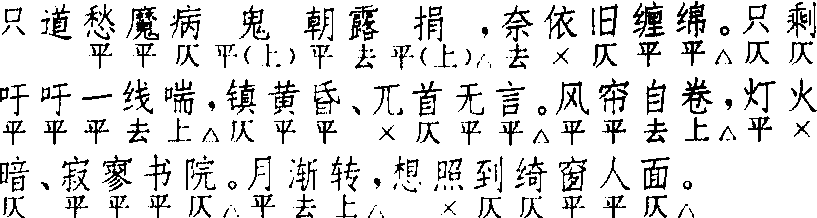 释义 | 集贤宾 集贤宾词牌名。又名《接贤宾》。有二体: 一为双调五十九字,上阕三平韵,下阕七平韵,始于五代毛文锡词。一为双调一百十六字,上阕五平韵,下阕六平韵,始于宋柳永词。又曲牌名。南北曲均有,均入商调。北曲字句格律与词牌异,用在套曲中。南曲有二:一与词牌五十九字体同,用作引子;一与词牌异,与北曲亦异,用作过曲。 ☚ 临江仙 蝶恋花 ☛ 集贤宾 集贤宾乔吉 《两世姻缘》 ![]() 全曲十句:7△,5△。7,7△。7,7△。7△,7△。5,5△。第三、四句可均作六字句,如杜善夫“暑才消”套、马致远“金山寺”套幺篇;又可作第三句六字、第四句四字,如马致远“天涯自他”套及“金山寺”套。康进之《李逵负荆》第七句本七字破为两句:“则俺那周琼姬,你可甚么王子乔。”这些句式变化,在北曲中都可找到其他例证。马致远“天涯自他”套第七、八句作:“扑通地石沉大海,人更在青山外。”第七句仍七字,第八句改六字折腰句,句式都已改变,北曲虽亦有他例,但究属少见。无名氏(旧题关汉卿)《五侯宴》减末二句,而以次牌〔逍遥乐〕首三句移置于前,则未见他例。套数首牌。与词牌〔接贤宾〕一名〔集贤宾〕不同;亦与南曲异。有幺篇,同前篇,只见用于马致远“天涯自他”套及“金山寺”残套。 ☚ 商调 逍遥乐 ☛ 集贤宾 集贤宾袁于令 《西楼记》 ![]() 全曲八句:7△,5△。7△,7△。4△,7△。3△,6△。第二句五字句第一字为领句字;此句多作六字。《白兔记·强逼》第五、六两句多作一遍。《拜月亭·推就红丝》第一支末句“忽有人同声相应,同气相求”,多一个四字句。《燕子笺·写笺》效之,作“分明有霍郎姓字,描写云鬟”。〔集贤宾〕多连用二支,有连用三支、四支者;亦可只用一支。套数首牌。小令常用。与北曲不同。《南词简谱》谓:“按〔集贤宾〕犯曲至多,不及备载。”所载有:〔集贤降黄龙〕、〔集贤听画眉〕、〔集莺花〕、〔集贤猫〕、〔集贤莺〕。后二种即〔啭林莺〕的新名。 ☚ 二郎神 啭林莺 ☛ 集贤宾 集贤宾见宋柳永《乐章集》,入林钟商(夷则商)。此调系将《花间集》中五代毛文锡之五十九字《接贤宾》加一叠而成,双调,一百十七字,上片十句五平韵,下片十句六平韵。与毛词校,用韵、句式小异。此调《词律》、《词谱》均不载,柳永词列入《接贤宾》调。参见《接贤宾》条。 ☚ 稍遍 御带花 ☛ 集贤宾虫虫。有画难描雅态,无花可比芳容。几回饮散良 宵永,鸳衾暖、凤枕香浓。算得人间天上,惟有两 心同。近来云雨忽西东。诮恼损情悰。纵然偷 期暗会,长是匆匆。争似和鸣偕老,免教敛翠啼红。 眼前时、暂疏欢宴,盟言在、更莫忡忡。待作真个宅 院,方信有初终。 这首《集贤宾》也是柳永集中视为俚词俗曲的代表作之一。虽有些市井俗气,却蕴涵着十分真诚的感情内涵。 柳永青年时候因科场失意而困居京华,常流连于汴京的歌楼舞榭、平康坊曲,曾有过一段恣情游宴、偎红倚翠的浪漫生活,欲将失意之悲,借歌酒风月自遣,于是把满腔的才情,都付之于秦楼楚馆之中。他常与那些色艺出众的歌妓来往,光意中的歌妓就有心娘、佳娘、虫娘、酥娘等数人。《乐章集》中的词,不少就为上述诸妓写的。如《木兰花》四首,分别吟赞心娘、佳娘、虫娘、酥娘四妓,他迷恋她们动人的色艺,并同情她们不幸的命运,真心希望与她们结成风尘知己。他在《鹤冲天》词中道:“忍把浮名,换了浅斟低唱”,为此而付出了落榜的代价。 这首《集贤宾》可看作柳永早年生活的一个缩影。词中提到的属意之妓虫虫即为他眷爱的四妓之一虫娘。词的上片用浓缩的笔墨追述了狎游生涯中最令其心动的一种情愫,那就是他对虫娘的爱。“小楼”句网罗梳理了浪漫天性中的种种风流韵事,才得出“最是虫虫”之情感归属。措辞坦率,不加讳饰。虫娘之美艳可人,词仅用“有画难描雅态,无花可比芳容”两句一笔带过。因为词之主旨并不在此,而在陈述近来“云雨忽西东”之儿女情态,故“几回”以下数句列叙相识以来两情浓挚、其乐融融的美满幸福生活,为下片“诮恼损情悰”埋下伏笔。 也许是近来囊中已渐羞涩,娼门逐客; 也许是虫娘不满于一时的欢会,意欲从良。反正这份感情已不如往日那般美满完整。他和虫娘的来往不得已而转为“长是匆匆”式的“偷期暗会”,这使词人大为懊丧并为此痛苦不已。下片“纵然”以下数语,可看作虫娘的口吻,仿佛是对结束云雨西东生活、摆脱目前为情所苦难堪处境的一种设想,意思是说象现在这样来去匆匆的幽欢总不是久远之计,为了日后能和鸣偕老,眼下还是暂时疏远为好,反正我与你已立下盟誓,你大可不必忧心忡忡,等“作真个宅院”,方才证明你往日对我许下的心愿。“作真个宅院”指赎身从良。这段文字明白晓畅、惟妙惟肖地模声模行,带着一片真情但又十分明智练达,是对日前日后生活的一个清醒理智的揣度。这段话一则可见虫娘之真情实意,二则可见虫娘之识见胸襟。这种爱情表达方式,充满着浓厚的市井趣味,是极妙的市井男女的风情写照。 柳永长期的冶游生活,使得他非常熟悉市井歌妓们的生活,他之于一般狎客不同的是在于他的多情和真诚,柳永与烟花巷陌的歌妓恋爱并为此付出了一份真情,所以他描写的坊曲爱情生活,自有不同于寻常的一份真味,《集贤宾》之动人之处,亦复在此。c 集贤宾 集贤宾