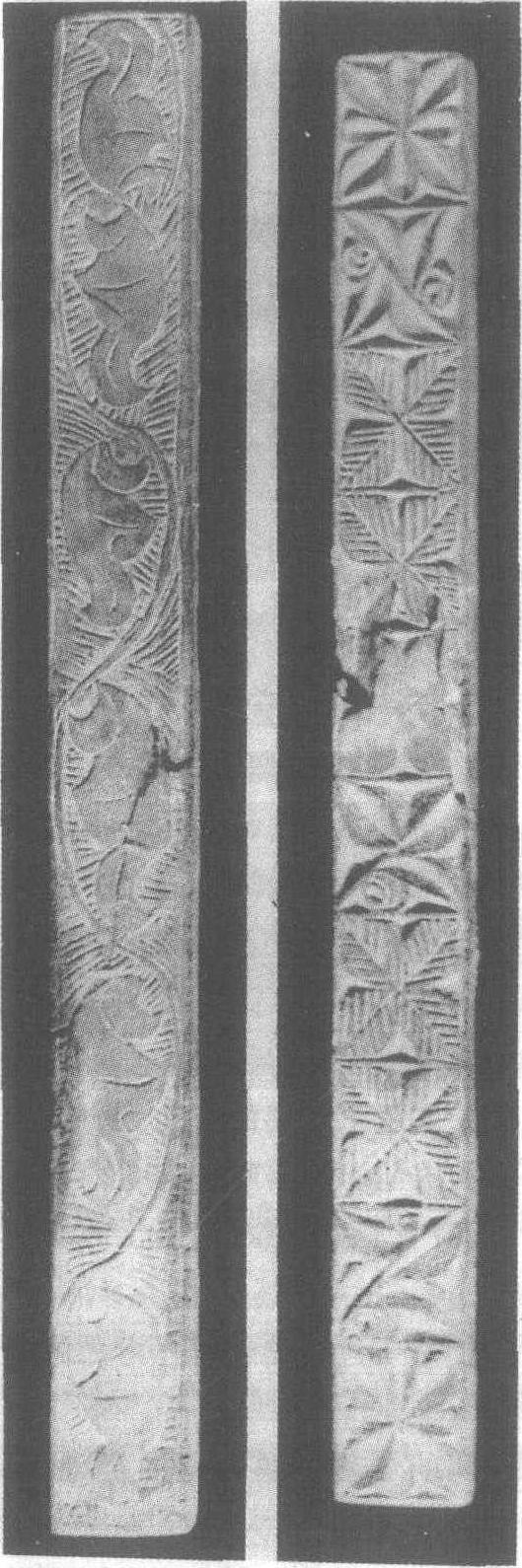 | 释义 | 雕花木尺 雕花木尺唐。通长29厘米,宽2.8厘米,厚1.3厘米。1966年新疆维吾尔自治区吐鲁番阿斯塔那44号唐宋怀嘉墓出土。新疆维吾尔自治区博物馆藏。木尺两端已磨光,正面等分十寸,每寸格内雕刻有草叶,花卉纹,花纹呈对称排列,背面刻六组卷叶纹,地饰以横线纹。