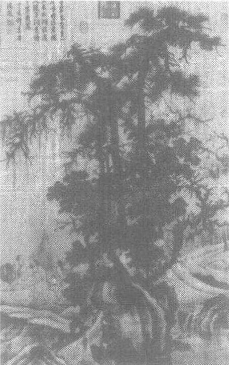元唐棣作,绢本设色。曾经明清两朝内宫收藏,钤有明内府 “典礼纪察司印”、清乾隆内府诸收藏印玺。《石渠宝笈初编》著录。《霜浦归渔图》是唐棣工笔山水画的代表作。画面采用近景构图方法绘参天古木,枝叶繁茂,顶部树枝对称斜展,下部枝干虬曲弯盘,坡岸平缓,坡石棱角分明,中有流泉,曲折流于石间。远景为一簇平林。渔民三人荷网背篮自坡岸间穿行而过,谈笑自得,怡然渔归。表现了渔民幽静而快乐的生活。此画人物刻画细致工整,形象虽小,却笔笔精到。树木山石用笔浓重,遒劲秀润,其鹰爪树、鬼面石有郭熙之遗风。本幅自识: “至元又戊寅 (1338)冬十一月,吴兴唐棣子华作。”作者唐棣 (1296—1364?),字子华,浙江吴兴人,以“茂才异等起家”,历任休宁县尹、吴江州知州,累官至五品大员。经荐举入大都,于天历至顺年间(1328—1331)奉诏画嘉熙殿山水屏风,又参与绘制集庆龙翔寺壁画,为皇帝所赏识,曾以绘画侍奉宫廷,待诏集贤院。唐棣早年有奇童之称,诗文书画都很有名,并得同乡赵孟頫亲自指点,得益不少。山水画继承北宋传统,师法郭熙、李成、赵孟頫,喜作林木窠石,峰峦起伏,表现山川高远、平远、深远的胜概。画法以工笔为主,而又有多种变化。运思布局细密精整,气势雄伟峻秀。