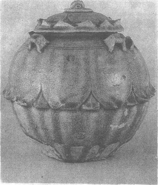 释义 | 青绿釉六系覆莲瓷罐 青绿釉六系覆莲瓷罐晋。高21.5厘米,口径10.5厘米。四川省成都市出土。四川省博物馆藏。此罐广口,短肩,球形腹,平底,带盖。肩饰大桥形耳。器盖和器腹刻覆莲花纹。莲花是最早用来装饰瓷器的花纹之一。从六朝起始盛行不衰,在佛教艺术中占有重要地位,被奉为“佛门圣花”,此器所刻莲瓣肥大,花瓣尖微向上卷。器身施青绿色釉,积聚处呈深绿。釉面开片细密。整个器物敦厚端庄,纹饰简洁无华,显示出神密宗教气氛。 ☚ 瓷器 青白釉蟠龙纹瓷水注 ☛ |