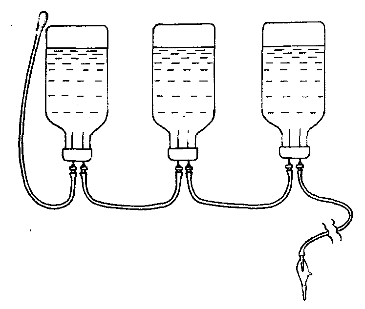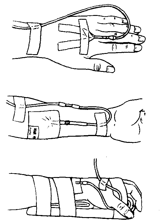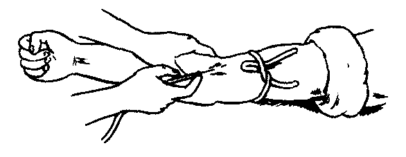 释义 | 静脉输液phleboclysis系最常用的治疗方法之一。小儿某些疾病如高热、吐泻、昏迷等所致脱水或不能口服药物也多采用静脉补液,成年人需补充营养、纠正电解质失调、抢救中毒、治疗用药、实施手术等亦多用静脉输液。静脉穿刺部位,小儿多取头皮浅静脉,成人多取上肢浅静脉,特殊情况下切开下肢大隐静脉或穿刺股静脉,亦可用颈静脉。输液种类很多、成分不一、量多少不等,但用药必须为合格的针剂,配伍应按规定,用量须在规定范围内,注意禁忌证与适应证,滴速与用量需掌握好,输液中应严密观察以及发生意外能及时处理,尤应注意心脏、肺脏、肾脏在输液过程中的功能。静脉输液应用较广泛,操作亦方便,效果明显,但用药较混乱,掌握不严格易出现事故,以慎重为佳。 静脉输液 静脉输液是将大量药液持续地滴入静脉,用以补充体液、营养,维持人体水电解质和酸碱平衡,治疗给药的重要手段。常用的输液部位有四肢明显的静脉,如肘部的正中静脉、贵要静脉、头静脉、前臂内侧静脉、手背静脉、足背及内踝等处的静脉。现在输液多采用一次性密闭式输液器,把药液准备好,中心铝盖去掉套上网兜,先用75%酒精棉签消毒药瓶的橡皮塞盖,后打开输液器袋,把近滴管端的针头套取下插入药瓶中央,再把排气短管的针头插入药瓶中央,将带有过滤棉的一端固定在网兜上。左手将药瓶倒转高举,右手同时拿住输液导管,并捏滴管处产生负压以利液体快速下流,排出少量液体,驱净管道中的空气,然后扭紧螺旋夹将药瓶挂在输液架或衣架上(图2—2—10)。输液前应先让病人小便,然后选择合适的静脉,在其上部用橡胶管稍加压结扎,使静脉充盈明显(图2—2—11)。用2.5%碘酒在进针局部做环形消毒(直径5~6厘米)待干后用75%酒精脱碘,让病人握拳,再一次查看输液管道无气泡即可进行静脉穿刺,见有回血将针头的1/2~2/3推入静脉内。松开橡胶管及输液管下端的螺旋夹,同时让病人松拳。用胶布条固定针栓部、接管处在肢体上,最后用一块消毒纱布或棉块盖在针头的穿刺部位,用胶布条固定好,不能配合的病人应用夹板固定(图2—2—12)。然后调整药液滴速每分钟80~120滴,应根据病人年龄、病情由医生决定。同时给病人输液的肢体摆放一个舒适体位,以避免长时间输液导致疲劳。如输液在1瓶以上时,可预先将全部药瓶用输液短管串连连续输注(图2—2—13)。静脉输液是一项技术性强、无菌技术要求较高的操作,应由受过严格训练的护理人员操作。在家庭中输液时,护士必须观察一段时间,认为没问题并指导家属掌握输液过程中必须注意的事项后方可离开。家庭输液配合要点:输液的环境应清洁,输液前先拖地或用湿笤帚清扫地面,清洁后通风,擦净放置药物输液用具的桌面。输液过程中不要在房间内捅炉火、铲灰,以免尘土飞扬污染药液。输液过程中若针尖部肿胀疼痛,是药液自静脉中溢出,应拔除针头重新输注。输液管道中如发现气泡,可用手指弹击使其返入滴管中,避免空气进入静脉造成空气栓塞,无法排除时应拔除针头。输液减慢或不滴时,要查看针头是否移位、针尖斜面受阻,可帮助病人活动一下输液的肢体,调整螺旋夹观察滴速,恢复正常可继续滴注。一般500毫升药需1.5~2小时输完,当液体走到滴管下端时可拔针。固定在针眼处的纱布胶条暂保留,压迫片刻防止出血。输液中若病人主诉发冷甚至寒战,是发生了输液发热反应,应停止输液与医护人员联系。