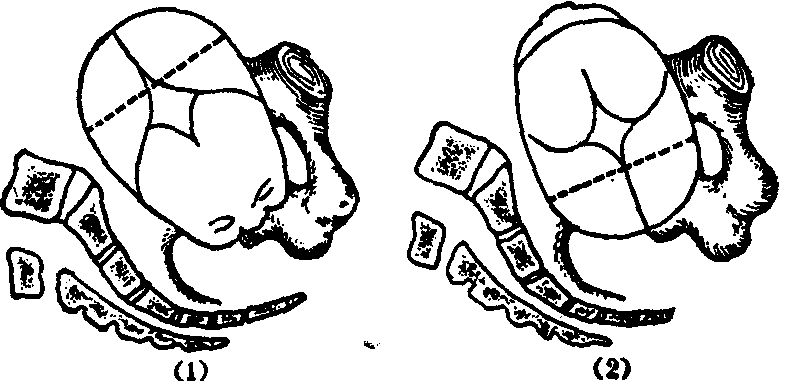 释义 | 面先露及额先露 面先露及额先露面先露即面位,为胎儿头先露时胎头极度仰伸的姿式,胎体呈反屈状,枕骨与胎背接近,面部远离胸部,挺胸弯腰,呈“S”状。其发生率约为0.2~0.27%,经产妇多见,凡影响胎头俯屈和使胎体伸直的因素都可导致面位,如骨盆狭窄、经产妇腹壁松弛、脐带绕颈、胎儿甲状腺肿大等;无脑儿因无颅骨,自然形成面位; 当胎儿较大因相对性头盆不称亦可发生面位。以颏为指示点,按面位与母体骨盆的关系可分颏左前、颏左横、颏左后、颏右前、颏右横、颏右后六种方位,以颏左前、颏右后位多见。 图1 面先露腹部四步手法触诊 在颏前位时因胸前贴近腹壁,胎心音清晰,颏后位时胎心音较遥远。仅凭触诊及听诊不能确诊。作肛查时可觉先露部高低不平,不规则,阴道检查时。如胎膜已破可触及面部器官。因面先露受阻面部常发生水肿,组织变脆弱,检查时动作应轻柔,以触到胎儿面部最好,此时可感到手指进入一孔无阻力,孔内可触到上腭或齿龈,有时可感到胎儿的吸吮动作,并应触摸此孔洞与周围之关系,口与两颧部呈一“▽”形,需与臀部鉴别,臀部肛门与周围骨组织即两坐骨结节间呈一线(图2) 且肛门内可触及胎粪。 图2 胎面与胎臀触诊的鉴别 X线检查可见过度仰伸的头部(图3)。为了解骨盆的形状,同时可做骨盆测量。 图3 面先露与顶先露X线象示意 面先露多随子宫收缩,胎头下降而逐渐形成明显的反屈现象,故分娩开始前较难查出。因胎头以大囟至颏的较长周径(长约35cm)通过骨盆,且面部骨胳不似颅骨那样易于变形,故胎头下降慢,产程长,如无骨盆狭窄及头盆不称,应密切注意产程进展。面先露中颏前位占2/3,颏后位占1/3,颏后位中2/3可转为颏前位,颏前位可经阴道分娩(图4),持续为颏后位者,胎儿颈部相对较短,不能适应较长的骶骨凹,故不能自然分娩,应行剖宫产(图5)。以往施行的用手旋转法、内倒转法以及腹部纠正胎儿脊柱前凸的办法,都有害无利,应摒弃。 图4 颏前位可经阴道分娩 图5 颏后位不能自然分娩 面先露对胎儿威胁较大,死亡率约为10~20%,多死于早产、颅内出血及窒息。此外,面部可高度变形,面部受压、水肿、充血甚至破裂,皮肤出现水泡,须注意护理以免感染。新生儿因口唇肿胀较甚,常有吸吮困难,头部呈仰伸状态,这些现象多于出生后数日消失。 额先露为胎儿头先露时胎头姿势在屈伸之间,即介于枕先露与面先露之间,胎儿大囟与眼眶部分与骨盆入口衔接,有额前位与额后位之分 (图6)。此种胎位多属暂时性,随子宫收缩的推动约2/3的病例转为顶先露(俯屈)或面先露(仰伸),多数面先露来源于额先露。持续呈额先露者颇为少见,约为0.05~0.1%,经产妇多见。额先露与面先露的发生原因大致相同,凡影响胎头正常俯屈的因素均可致成额先露。 图6 额先露 腹部触诊额先露与面先露大致相同,子宫呈长椭圆形,胎头触诊较明显,与胎背在同侧。额先露常因额部水肿,肛查不易确诊,多需作阴道检查。在骨盆横径上触到胎头的冠状缝及矢状缝的前部大囟等,沿此向前可触到鼻根部及两眼眶及口部,多数因胎头受阻,检查不能满意,在剖宫产时发现额部被骨盆入口阻挡的水肿痕。 额先露多为暂时性胎位,临产后多变为面先露或枕先露,处理方法相同。如呈持续性额先露,自然分娩的可能极少,处理方法与持续性颏后位相同。正常大小的胎儿应行剖宫产术。如不及时处理,对母子威胁均较大。产妇可发生子宫破裂及产后出血等严重并发症,胎儿可因窒息及颅内出血而死亡。 ☚ 胎头高直位 臀先露 ☛ |
