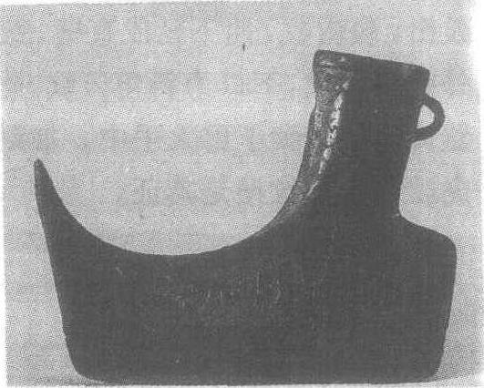 战国。古代兵器。高9.5厘米,刃宽12.4厘米。1963年湖南省衡阳县霞流市出土。湖南省博物馆藏。此钺呈靴形。銎作椭圆形。正面在绳索圈内铸一人,赤脚、佩剑,其左右两侧还有一些不知名的图案。背面铸有六人,从左至右逐渐缩小,有的佩刀剑,有的持钺,还有的坐地举手,或作奔跑状。从钺的形制、纹饰和人物装束看,与岭南越族地区所出之钺有相似之处,应是铸于越地而流入楚地的制品。