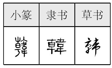 释义 | 韩字君平,南阳(今河南南阳附近)人。天宝十三年(754)进士。充节度使幕僚,后官驾部郎中,知制诰,官终中书舍人。为“大历十才子”之一。他刻意追求诗歌技巧和华丽的词采,多是流连景物的应酬赠别之作,清新秀丽,在当时颇负盛名。《全唐诗》录存其诗三卷。事见《新唐书·卢纶传》。 韩 韩周代诸侯国名。hán。在今河北省固安县东南。姬姓,开国君主是周武王的儿子。《大雅·韩奕》五章:“孔乐韩土,川泽訏訏。”郑 《笺》: “甚乐矣韩之国土也,川泽宽大,众鱼禽兽备有。”訏訏,大。 ☚ 郿 韩姞 ☛ 韩读音h·an(ˊ),为an韵目,属an—ian—uan—üan韵部。河干切,平,覃韵。 上一条: 鶾 下一条: 韓 ![]() ![]() 韩❶〈隐〉旧时四川重庆江湖诸行指数目三。参“高、明、韩、苏、大、雍、草、梅、湾”。 韩韓hán❶周朝诸侯国名,战国七雄之一,在今河南、山西一带。 韩hán❶ 周代诸侯国名,是战国七雄之一,在今河南中部和山西东南部。 韩han韩国 韩信点兵,多多益善 韩hán古代名物 > 天象類 > 天體部 > 二十八宿 > 韓 韓 hán 星名。有一星,“十二國”之一。屬女宿。 韩hán〖名词〗 韩韓hán周代诸侯国,后为晋所灭。《左传·僖公二十四年》:“邗、晋、应、~,武之穆也。”(武之穆:周武王的儿子。)又为战国七雄之一,后为秦所灭。《唐雎不辱使命》:“且秦灭~亡魏,而君以五十里之地存者,以君为长者,故不错意也。” 韩*韓hanBAAB 韩明代医学家。字天爵。四川泸州人。曾到峨眉山等地求师学医。著有《韩氏医通》一书,强调四诊在鉴别疾病上的重要性。对书写病案作了较全面地规定和改进。规定要先写病人姓名、籍贯、年、月、日; 次要记载一般营养状态、身高、颜色; 再次注意病人的语言、声音。问诊时要注意主诉病因,发病起始日、发热、喜恶、日夜轻重、曾服何药等。再次为切脉法,更要注意体质。然后按病分类,拟定诊断,规定治法和处方,并告知调药方法。 韩 韩西周时侯国之一。公元前十一世纪中叶建立。在今陕西韩城一带。春秋时被晋所灭。战国时七雄之一。公元前424年始,在今河南中部,山西东南部建国,历武子、景侯、烈侯、丈侯、哀侯、懿侯、昭侯、宣惠王、襄王、釐王、桓惠王、韩王安12侯王,194年,至公元前230年被秦所灭。 ☚ 鳏寡 汉代户口 ☛ 韩 韩战国时期由 “三家分晋”而形成的诸侯国。开国君主是韩景候 (名虔),其祖即春秋晋国大夫韩武子。前453年与赵、魏瓜分了晋国。前403年被周威烈王承认为诸侯国。建都阳翟 (今河南禹县) 战国初期,三晋势力都很强,各自在中原发展势力。前375年,韩哀侯在位,“郑恃魏以轻韩,伐榆关而韩氏亡郑” ( 《战国策·魏策四》),将郑国灭后,韩的疆土大大扩展,并且迁都到郑 (今河南新郑)。其疆域有今山西东南部和河南中部。成为“战国七雄” 之一。由于地处魏、秦、楚三国之间,所以成为军事上必争之地。自前294年开始,秦国便频繁攻打韩国,夺去了武始、新城 (今河南伊川西南)之后,韩联合魏抗秦,在伊阙 (今河南洛阳龙门)被秦将白起打得大败,韩被迫割让武遂 (今山西垣曲东南)200里地给秦。此后韩国江河日下,疆土不断被秦国蚕食。前231年,韩把残存的一部分南阳地献秦,秦派内史腾做南阳假守,次年,内史腾攻韩,俘虏了韩王安,置颍川郡,韩国灭亡。 ☚ 齐 赵 ☛ 韩hán❶周朝国名,在今河南中部和山西东南部。 韩 韩古国名。公元前十一世纪周分封的诸侯国。开国君主是周成王弟(失名)。在今陕西韩城市南(一说在今河北霸县,也说在山西河津县东北,春秋时为晋所灭)。《元和郡县志》韩城县:“古韩国及梁国,汉为夏阳县之地。韩国故城在今县理南十八里。”另有战国七雄之一的韩国,开国君主是韩景侯,是春秋晋国大夫韩武子后代,公元前403年被周威烈王承认为诸侯, 建都阳翟 (今河南禹县)。 ☚ 莘城 梁 ☛ 韩(韓)hán ❶ (周朝国名) Han (a state in the Zhou Dynasty) 韩战国时大国。战国早期从晋国分出,公元前403年韩景侯虔列为诸侯,都城在阳翟(今河南禹县城关)。公元前375年灭郑,都城迁至新郑(今河南新郑县城关),从此又称为郑。韩、楚为争夺汝、颍二水的上游地区进行过多次战争。公元前230年为秦所灭。 韩古国名。战国七雄之一。初都平阳(今山西临汾县西南),又都宜阳(今河南宜阳县西),阳翟(今河南禹县),最后灭郑,迁都于郑(又称南郑,今河南新郑县)。公元前230年为秦所灭。 韩古国名。❶周时分封的诸侯。姬姓。在今陕西韩城县。为晋所灭。 韩hán❶ 韩*韓hán(12画) *韩(韓)hán12画 韩韓hán战国作倝(gàn),是形声字。从𠃓(易(yáng),扬本字),㫃(yǎn,旗状。又等于“旗”)声。扬旗义;又是日光照耀义。东周假借为韩国的韩字。倝韩声转,如高蒿、根很例。战国时韩国在现在河南省中部、山西省东南角一带。 韩韓★繁◎常★常hán形声,小篆从韋,倝声,隶定为“韓”,音符省略部件。本义为井栏,假借为古国名,由此引申为姓。《简化字表》类推简作“韩”。 |