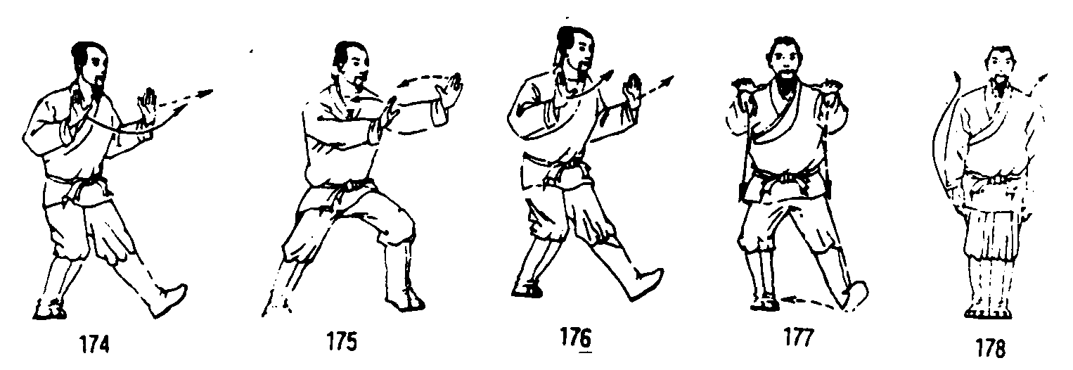 【造句】 ❍ 他假装糊涂,竟~,把责任推到老陈身上。 ❍ 大家都说划船不好爬山才有趣,班长只好~地表示同意。 顺水推舟shùn shuǐ tuī zhōu见“顺水推船” 。 顺水推舟(同)因势利导 二小子不拉纤顺水推舟 顺水推舟 顺水推舟顺着水流的方向推船。比喻顺应某种有利形势说话或做事情。 ☚ 守经达权 随风倒柳 ☛ 趁势 趁势顺势 乘势 乘时 顺应时势而行动:顺时而动 顺应当时的情势,采取相应的行动:顺水放船 顺势或趁机行事:就汤下面 借汤下面 借汁下面 顺应趋势办事:顺风旗 顺水推船 顺水推舟 顺水行舟 借水推船 趁水推舟 改变原来主张,乘势凑上去办成某事:移船就岸 移船泊岸 引船就岸 移船就泊 撑船就岸 见机行事,顺势而为:顺风扯旗 乘现成条件做或风势做:随风柁 乘着现成条件或水势做:借水推舟 借水行船 借水行舟 借水推船 借风使船 趁势行事 乘着有利形势或条件做事:乘时借势 乘时附势 因势乘时 乘时射势 乘时顺势 乘时因势 趁着胜利的形势:乘胜 逐胜 席胜 顺水推舟或顺势找台阶下:顺坡下驴 顺坡骑驴 就坡下驴 借坡下驴 借坡下马 借高下驴 (利用有利的形势、时机:趁势) ☚ 顺便 乘机 ☛ 顺水推舟练功方法之一。见上海中医学院附属推拿学校《推拿学》。两手伸掌置于两腰,掌心朝上,用力徐徐向前推出,边推边旋臂使掌根朝外,虎口朝下,两手指尖相对,似环之形,再慢慢将掌收回至两腰部。 顺水推舟 顺水推舟导引保健功动作之二。8拍动作: ❶随着吸气,提肛调裆;身体左转(不超过45°),重心移到右脚,右腿半蹲,左脚向左前方上步,脚跟着地成左虚步;同时两掌向左前方弧形上摆至与肩平时,两肘沉屈将掌收于胸前,掌心朝前,掌指朝上;眼平视前方。(图174) ❷随着呼气,松腹松肛;重心前移成左弓步;同时两掌继续向下、向前、稍向上推出,臂自然伸直,肘尖下垂,坐腕跷指;眼平视前方。(图175) ❸随着吸气,提肛调裆;重心移至右脚,右腿半蹲,左腿伸直,左脚尖跷起成左虚步;同时两肘回屈,两掌继续向上划弧收于胸前,掌心朝前,掌指朝上;眼平视左前方。(图176) ❹拍同 ❷拍, ❺拍同 ❸拍, ❻拍同 ❷拍。 ❼随着吸气,提肛调裆;重心移至右脚,右膝半蹲,身体继而向右转正,左腿伸直脚尖翘起;同时两掌稍向上划弧至肩前,两臂自然伸直,肘尖下垂;眼平视前方。(图177) ❽随着呼气,松腹松肛;左脚向右脚并拢,随之两腿伸直;两掌按于体侧,臂自然伸直,掌指朝下;眼平视前方。(图178)第2个8拍同第1个8拍,唯身体右转(不超过45°)做动作。练功次数:共做两个8拍。要点:成虚步时上体要正直,松腰敛臀;成弓步时臀部勿突出,要松胯沉臀;意守劳宫穴。
