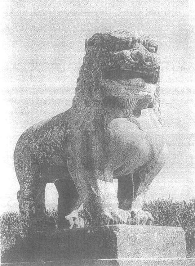 释义 | 古代名物 > 雕繪類 > 雕塑部 > 陵墓雕塑 > 順陵石獅 順陵石獅 shùnlíngshíshī 唐石雕。位於陝西咸陽陳家村武則天之母楊氏順陵前。高三○五厘米,長三四五厘米。一對,分立於長方形石座之上,頭披鬈毛,突目隆鼻,昂首挺胸,四肢粗壯,高大雄偉。兩獅面南并立,似闊步緩行,雄獅張口厲吼,肌肉緊張,雌獅閉口凝神,豐毛多肌。氣勢雄壯豪邁,顯示了大唐帝國不可一世之氣概。獅與座係以整塊石灰巖雕成,再置石礎之上,座、礎四周有綫雕花紋。石狮雕刻異常壯觀,爲現存唐代石獅中突出之傑作。 顺陵石狮 顺陵石狮武则天(624~705年)是唐高宗李治帝后,热心于朝政,与高宗并称“二圣”。690年废睿宗,自称圣神皇帝,改国号为周,史称武周。武则天称帝后,追封武氏祖先,为其母杨氏建造陵寝——顺陵。 顺陵石狮 顺陵位于咸阳东北18公里处,坟丘高出地面12米余。四周原有双重城垣,设东西南北四门,已毁坍。南门之外为神道,两侧恭立虔诚的侍臣和威风凛凛的雄狮、天禄(各 一对)。其他三面门外,也有巨兽守护,北门立狮、鞍马各一对,东西二门蹲狮各 一对。这些瑞兽都是以整块巨石雕凿的大型石雕,陵南 一对天禄高达4.15米,数里之外即可望见。这件石狮在顺陵南门神道之左,与右侧石狮相向而立。通高3.05米,长3.45米。石狮于方形基座之上。挺胸伫立,巨头高昂、眉宇紧蹙、目光威严,张血盆大口发出雷鸣般吼声。中国雕塑向来讲究以势夺人,作为大型陵墓雕刻,气势的创造尤为重要,有势有气则生,无势无气则亡。这件石狮以大如磐石的体量、安若泰山的站姿、气冲霄汉的魂魄,造成惊天地、泣鬼神的气势,有汉代雕刻之雄浑,六朝雕刻之劲健,充满了一种更深沉内在的力量,为中国陵墓雕刻最优秀的作品。 ☚ 乾陵石狮 龙门石窟奉先寺大佛 ☛ 顺陵石狮 顺陵石狮shunling shishi唐代。位于咸阳市渭城区底张镇陈家村南顺陵前。武周天授元年(690)前后刻。圆雕。雄、雌各一。其中雄狮最为威武,高305厘米,长345厘米,宽100厘米。躯体硕大,头披卷毛,突眼隆鼻,丰颐利齿,阔口半开胸肌健壮,迈步前趋,巍然屹立,气势雄强,为唐代各陵中最大而具有代表性石刻之一。 ☚ 顺陵天禄 顺陵内城神道石刻 ☛ |