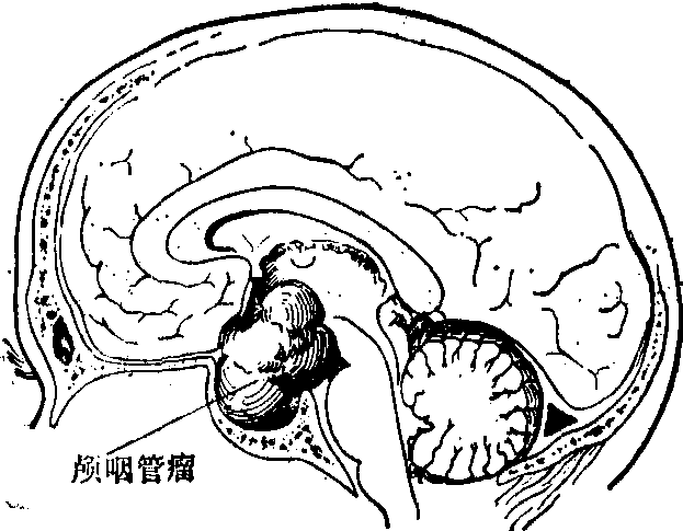 释义 | 预咽管瘤 预咽管瘤颅咽管瘤起源于胚胎期颅咽管(又名Rathke囊)的残存上皮细胞,是颅内最常见的先天性肿瘤。大多发生于鞍区(图),仅少数见于其他部位。由于颅咽管上皮可向各方向发展,故肿瘤位置各异。 颅内鞍上型颅咽管瘤 瘤体小者多为实质性。大者多为囊性,单房或多房,囊内含有黄色透明或其他颜色的粘稠液体,并有大量胆固醇结晶和蛋白质。巨大的囊性肿瘤内常含有不等量的实质性瘤组织。肿瘤包膜光滑,厚薄不一。厚者呈灰白色或淡红色,薄者则随囊液颜色而异。包膜和实质性肿瘤组织中常有钙化,肿瘤属良性时,血管不多,呈扩张性生长,常与周围结构粘连。小儿颅咽管瘤的组织结构多为乳头型。 颅咽管瘤位居小儿鞍区肿瘤的首位(约占54%)。好发年龄为7~13岁,极少数曾见于新生儿。男性发病率较女性稍高。 颅咽管瘤的症状与肿瘤体积大小及对周围结构的关系密切。一般概括为: ❶垂体和丘脑下部损害症状:表现为发育缓慢或停滞、身材矮小、软弱无力、易倦、呆板、嗜睡、肥胖或消瘦等; 青春期生殖器官和第二性征不发育,成为肥胖性生殖无能(Frohlich)综合征; 丘脑下部垂体束严重受损时则出现尿崩症。 ❷颅神经损害症状: 视神经或视交叉受压,视力减退和视野缺损。视神经直接受压可引起视神经原发性萎缩,但继发性视神经萎缩在颅咽管瘤病例中更为常见,此乃颅内压增高的最终表现之一,而非视神经直接受压所致。少数病例出现其他颅神经麻痹,较常见的为眼球运动神经麻痹。 ❸颅内高压症状:肿瘤压迫室间孔所致的脑内积水和肿瘤在颅内的占位作用,是引起颅内压增高的主要原因,有颅内压增高的症状及体征。症状发展缓慢,易被忽视,又因小儿缺乏正确主诉,故不少病例到颅内压严重增高时始被发现。当肿瘤增大到损害周围脑部(如额叶、颞叶等)、则可产生与之相应的局部神经症状。 约70%的病例,颅骨X线片见鞍区有斑点状或弧形钙化影。断层摄片检查时,这种钙化的显示率高达90%以上。因此,根据临床症状、鞍区钙化影、颅内高压所致颅骨和蝶鞍改变,一般易于确诊。但于治疗前尚须进行电子计算机X线体层摄影和内分泌学检查。 颅咽管瘤治疗以手术为主,按病情许可和技术可能,施行肿瘤全部切除术、部分切除术或囊液引流术; 完全不适于切除时,可施行脑脊液分流术。亦可采用放射治疗(肿瘤内或体外放射)或与手术治疗联合应用。此外,尚需补充缺少的垂体激素。 除肿瘤可全部切除和放射治疗疗效良好者外,绝大多数肿瘤仍将继续长大。因此,颅咽管瘤的病理性质虽为良性,但治疗效果尚不理想。 ☚ 大脑半球肿瘤 脉络丛肿瘤 ☛ |