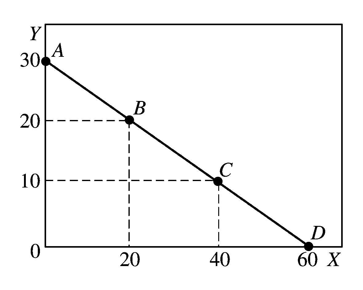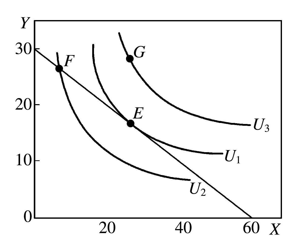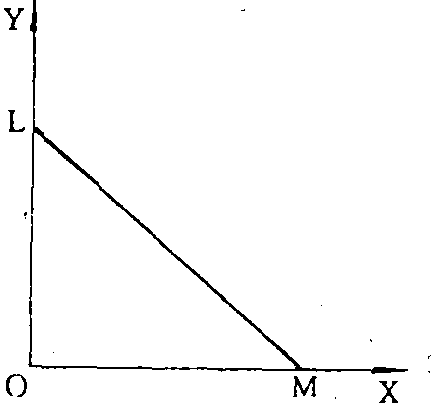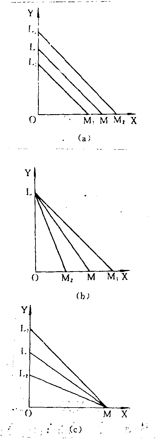 释义 | 预算线又称“消费可能线”。“收入线”、“价格线”、“支出线”。“预算约束”、“财富约束”。指在一定价格水平下,消费者用其既定收入购买物品的最大可能组合。预算线的斜率和位置,决定于所要购买的物品的价格。如果全部收入M花在价格分别为Px和Py两种商品X和Y上,预算线方程式就可以写做M=Px·X+Py·y,或 预算线Budget line又称为“消费可能性线”或 “价格线”。假定消费者将其全部货币收入用于购买商品,预算线是消费者花费其全部货币收入后所能购买的商品量的集合。设一个消费者有固定收入为I,他所要选择的商品用 (x1,x2)来描述。假如两种商品的价格是固定的,分别记为P1和P2,那么消费者的预算约束是P1X1+P2X2≤I; 当等式成立时,消费者的收入正好用完,P1X1+P2X2=I,这个等式就是预算线的数学表达。通常消费者消费的商品有很多种,为了分析和画图的需要,预算线通常被简化成只含有两种商品。这种简化形式实际上是具有一般性的,因为预算线中的I可以不代表全部货币收入,而只代表消费者在两种商品上的总开支预算; 或者可以将其中一种商品理解为复合商品,甚至直接把它当成货币。上述预算线可以改写为X2=-(P2/P1) X1+I/P2。下图是预算线的图形表示。预算线下的部分都满足消费者的预算约束,但总支出小于总收入; 只有预算线上的商品组合使得总支出等于总收入。预算线的截距表示全部收入用于购买某一种商品时可以购买的商品数量,也即消费者最多可以消费的某种商品的数量。其斜率的绝对值为两种商品价格之比。假如消费者在预算线上最初选择了 (x1,x2,),现在做一个小变动,选择 (x1-Δx1,x2-Δx2),但仍使预算约束等式成立,(p1(x1-Δx1)+p2(x2+Δx2)=I,由于P1X1+ P2X2=I,所以 ΔX2/ΔX1=P1/P2,因此预算线的斜率其实是市场上用一种商品替代另一种商品的比率。收入变化会引起预算线的平移。当收入增加时,预算线将向右平移;当收入减少时,预算线将向左平移。价格变化会影响预算线的斜率,还可能影响截距。假设P2不变,P1提高,预算线将以在纵轴上的截距为中心逆时针旋转。如果P1和P2以相同的辐度变化,预算线将向左 (价格同时上升) 或向右 (价格同时下降)平移,这说明消费者的实际购买力不仅取决于收入,而且还取决于价格。如果所有的价格和收入同比例变化,预算线保持不变。政府征收总额税,会引起消费者收入减少,预算线向左移动。政府对商品1征收数量税或者从价税,消费者面临的税后价格变成P1+t或P1(1+t),预算线将更加陡峭。预算线和消费者的无差异曲线相结合就可以确定消费者的效用最大化的最优选择,它一定是预算线与无差异曲线的切点,在这一点上,消费者对这二种商品的主观边际替代率等于这两种商品在市场上的价格比率。 预算线又称“预算约束线”。在消费者的收入和商品价格既定的情况下,该收入所能购买到的各种商品的所有可能的组合。以鱼(以X代表)和鸡(以Y代表)这两种商品为例,假设一个消费者的收入为300元,全部用于购买这两种商品。1单位鱼的价格为5元,1单位鸡的价格为10元。图1中横轴代表鱼的数量,纵轴代表鸡的数量。在A点,消费者只买鸡而不买鱼,300元可购买30单位鸡;在B点,消费者可用100元买20单位鱼和用200元买20单位鸡;在C点,消费者可用200元买40单位鱼和用100元购买10单位鸡;在D点,消费者只买鱼而不买鸡,300元可买60单位鱼。AD线即为消费者的预算线,其上所有各点都代表消费者在既定收入下可能的购买组合。从A点到B点、从B点到C点、从C点到D点时,都是增加20单位鱼,同时减少10单位鸡,增加1单位鱼可替代1/2单位鸡。以ΔX代表鱼的数量的变化,ΔY代表鸡的数量的变化,PX代表鱼的价格,PY代表鸡的价格,增加1单位鱼与所减少的鸡的数量之比(ΔY/ΔX)即预算线的斜率的绝对值,等于两种商品的价格之比(PX/PY)。可写为: ΔY/ΔX=PX/PY 图2给出预算线和三条等效用曲线(即无差异曲线)U1、U2、U3,距离原点越远的等效用曲线表示效用越大。等效用曲线U1与预算线相切于E点,等效用曲线U2与预算线相交于F点。切点E是既定收入下使消费者的效用最大化的商品组合。在收入既定的条件下,如果选择等效用曲线U2上的F点,则其效用小于U1;如果选择等效用曲线U3上的G点,则其现有收入不够。等效用曲线上,点的斜率的绝对值是两种商品的边际替代率,它是消费者为保持相同的效用,增加某种商品数量与减少另一种商品数量的比率。以MRSXY代表鱼对鸡的边际替代率,则有:MRSXY=ΔY/ΔX 在预算线与等效用曲线的切点上,两条线的斜率相等,即两种商品的边际替代率等于其价格之比,这是在既定收入下使效用最大化的条件。可写为:MRSXY=ΔY/ΔX=PX/PY 图1 图2 预算线 预算线Budget Line又称消费可能线。用来描绘一个消费者在他收入可能范围内可以购买到商品和服务的最大组合。假定一个消费者的月收入为150元,他可以购买两种商品X和Y,X商品的单价为30元,Y商品的单价为50元。该消费者若把全部收入用于购买商品X,则最多可购买5个单位(150/30);如全部用于购买商品Y,则可购买3个单位(150/50)。用图来表示,纵轴Y表示Y的购买量,横轴X表示X的购买量,我们把5个单位的X1点和3个单位的Y1点相连,就得到预算线X1Y1。在预算线X1Y1上的各点说明消费者全部花完其收入所能得到的各种商品的组合。在预算线内的各种商品组合说明消费者未用完其收入,在预算线外的各种商品组合