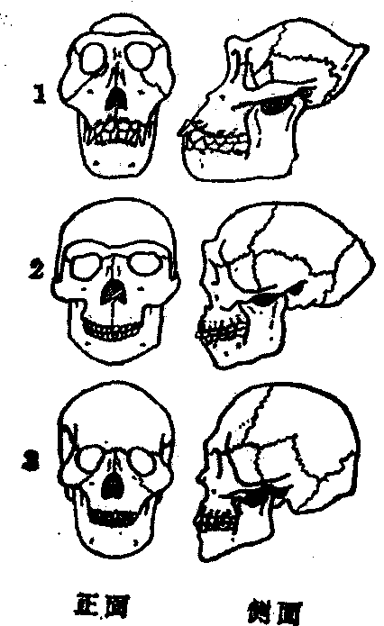 从类人猿、北京人及现代人颅面骨的比较,可看出从猿到人颅面的演化情况(图、表)。
