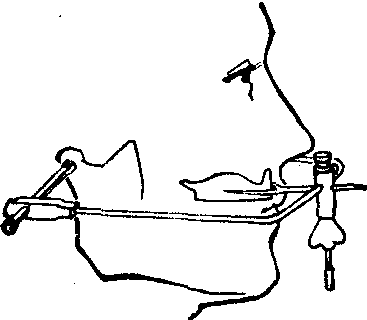转移颌位关系的方法步骤: ❶确定髁铰链轴的位置:从病人耳屏后缘中点至同侧眼外眦作连线,在此线上于耳屏后缘中点前13mm处作垂线,此二线的交点即为髁铰链轴的位置。用脱色笔标记,以此作为转移颌位关系的两个后参考点。 ❷调节和固定面弓髁梁间的距离: 将面弓两侧的髁梁置于病人两侧髁区的标记点上,调节髁梁的距离,使其两侧的读数相等。固定后,取下面弓待用。 ❸固定颌叉: 将烧热的颌叉插入模型上的上蜡颌堤中,使叉端与颌堤平面平行, 颌叉中线对准颌堤中线。然后将上、下颌堤戴入病人口内,并咬合于正中颌位。 ❹安放面弓和连接颌堤: 将调节好髁梁距离的面弓置于病人髁区的标记点(后参考点)上, 并将颌叉柄插入面弓体上的颌叉固定铗内。 必要时还可调节颌叉固定铗的位置。然后锁紧螺丝, 即将上蜡颌托与面弓连接成一整体。 换言之,即将上颌与两侧髁突在前后、上下、左右间的位置关系记录下来(图)。 ❺上颌架: 首先按常规调节好Hanau Model H颌架的各个部件。将附有上蜡颌托面弓的髁梁套入颌架两侧的髁杆上,并重新调节髁梁的距离,以适合颌架髁杆间的宽度, 但务使两侧髁梁的读数仍相等。 然后调整面弓体的高度, 直到上颌堤前牙区颌平面与切导针的下横刻线齐平。以此作为前参考点来确定上颌模型的上下位置, 即达到上颌堤前部颌平面平分颌架上、 下臂间的距离。 将上颌模型就位于上颌托中, 并用石膏将上颌模型固定在颌架的上臂。 因此, 上颌模型与颌架两侧髁球间的位置关系,同病人上颌与两侧髁突间的位置关系相同或相似。 最后按上下颌堤的正中颌关系, 将下颌模型用石膏固定在颌架的下臂。 至此, 无牙病人颌骨的垂直和水平位置关系,就从口内转移至口外,为全口义齿人造牙的排列作好了准备。 ☚ 颌位关系记录 全口义齿排牙原则 ☛ |